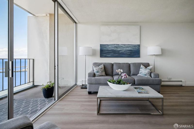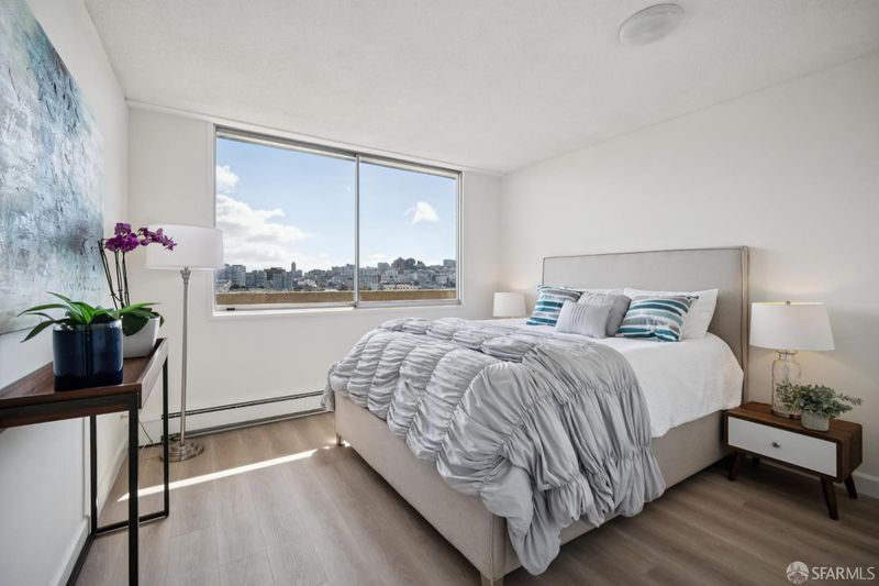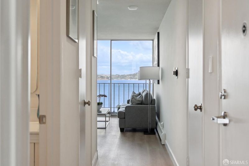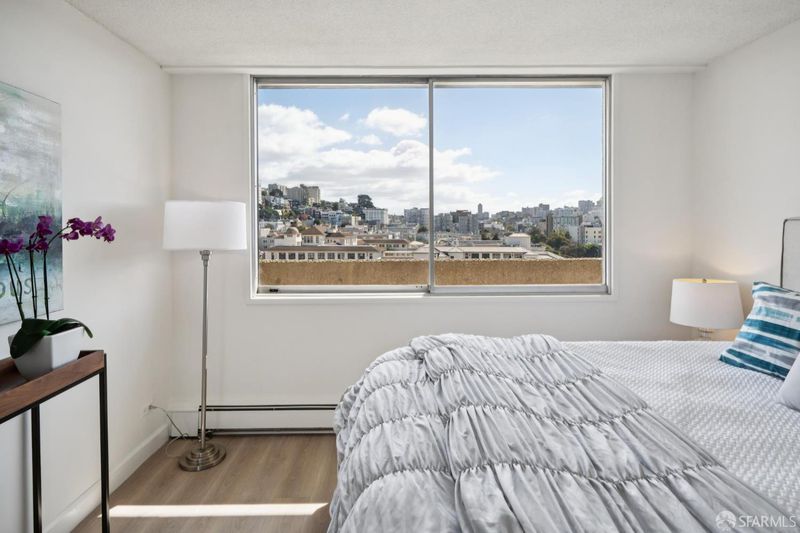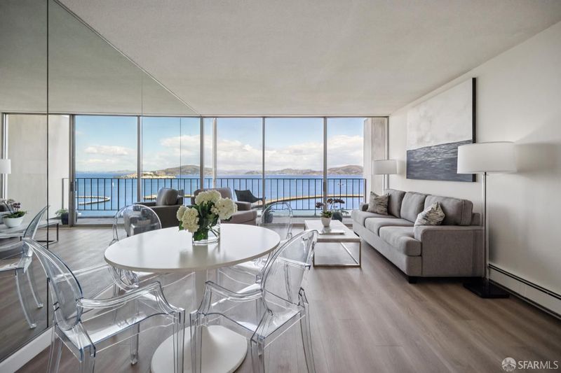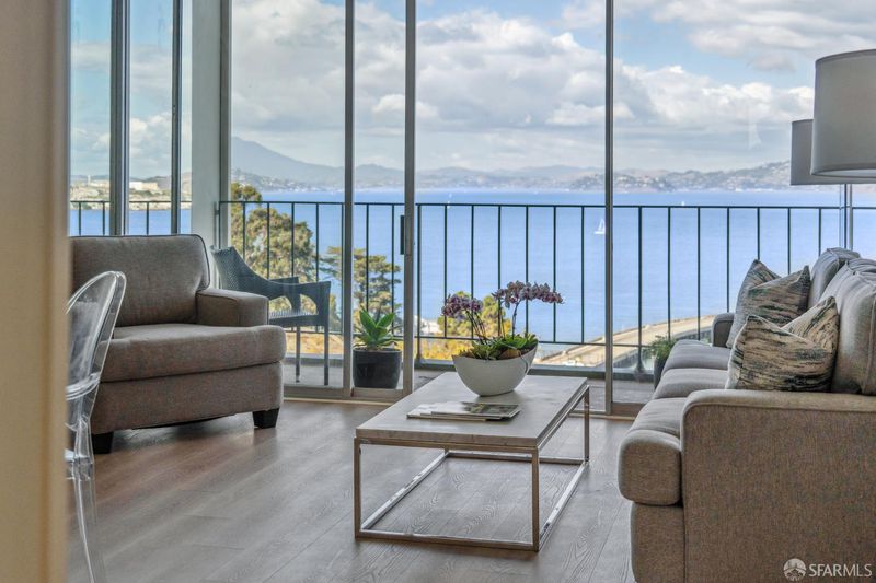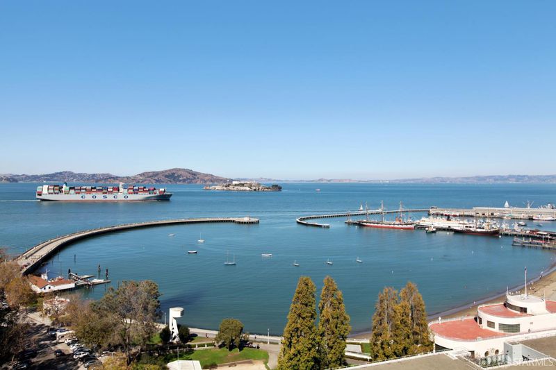 The views don't get much better than this! Enjoy ever-changing vistas of the San Francisco Bay from this iconic mid-century building. Expansive sliding window walls flood the residence with abundant natural light, seamlessly connecting the interior to the outdoors. The living space opens onto a private exterior deck - the perfect spot to savor morning coffee or unwind with evening beverages while taking in the scenery. The bedroom showcases sweeping San Francisco skyline views stretching from the Bay Bridge to Sutro Tower. Garage parking, extra storage. Building amenities include: Secure Doorman building, laundry on every floor, swimming pool, guest parking, BBQ, community room, car wash area and bike storage. Monthly HOA of $1213 includes PGE, water, heat, refuse, common area maintenance and insurance and reserves. Ideally located near Ghirardelli Square, Aquatic Park, The Marina, shopping and transportation, the home offer unparalleled acces to the city's best amenities. Take a short stroll to the many vibrant shops and restaurants along Polk, Chestnut and Union Streets, as well as North Beach. From your home, enjoy front row seats to Fleet Week and all the happenings on the Bay.