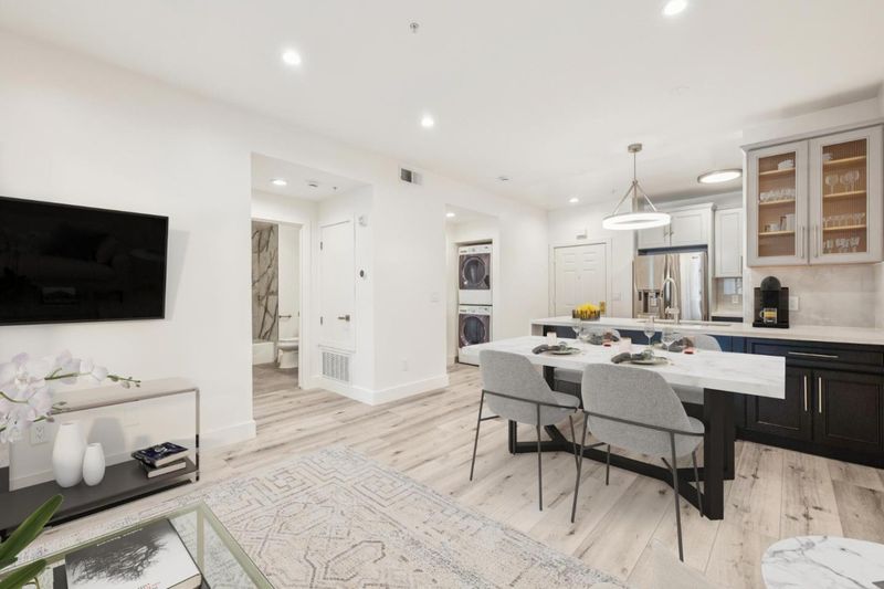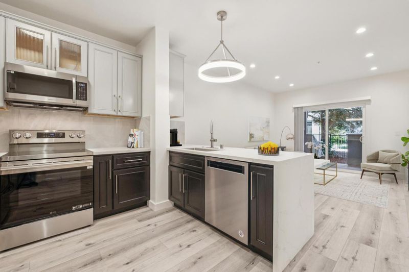 This beautifully remodeled 1-bedroom plus bonus guest bedroom unit offers a rare opportunity to own in the highly desirable Parc Crossings community. The expansive, light-filled living room flows seamlessly onto a large private balcony with tranquil, park-like views. The home showcases brand-new hardwood flooring throughout, freshly painted interiors, and a fully updated kitchen featuring sleek marble countertops, modern cabinetry, and high-end stainless steel appliances. The stylishly remodeled bathroom complements the home's clean, modern look. Additional comforts include an in-unit washer and dryer, a Nest thermostat, and a central HVAC system for year-round climate control. Residents enjoy secure underground parking, additional storage, and access to amenities such as a pool, hot tub, clubhouse and playground. Ideally located within walking distance to Caltrain, Whole Foods, Safeway, Starbucks, and 24-Hour Fitness, this home also offers easy access to highways 280, 101, and 85. Situated near the borders of Los Altos and Palo Alto, unit 152 lies within the highly rated Los Altos School District. Whether you're enjoying the community's peaceful green spaces or the nearby shopping and dining, this home delivers the perfect blend of comfort, style, and convenience.