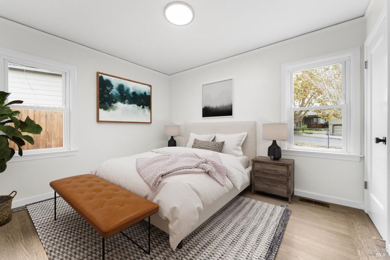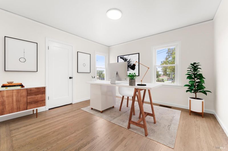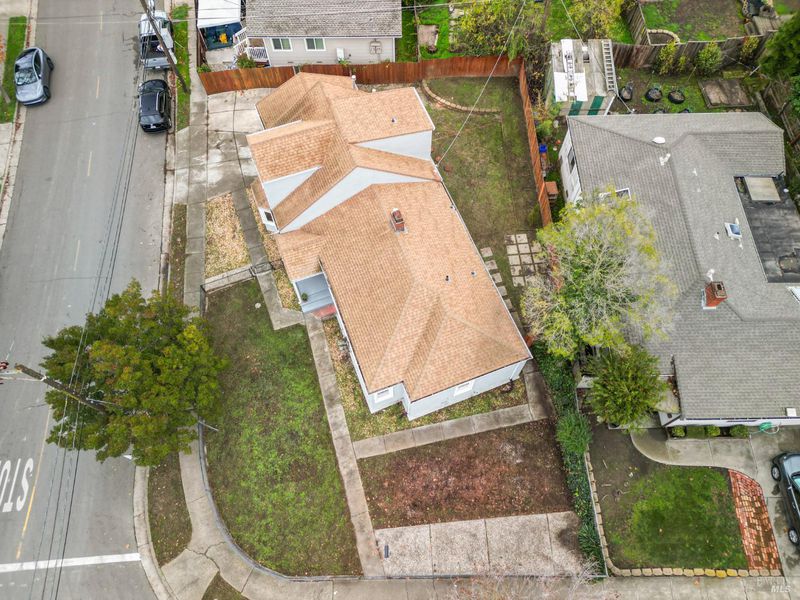 As you arrive, you'll drive down tree-lined streets filled with homes that have pride of ownership, to eventually find this uniquely positioned corner home angled just right for potential standout curb appeal! Built in 1940 and thoughtfully added on to in the 90's per permit records. This home offers 1,965 sq ft of charm, character, and comfortable modern living - because of the addition, you'll find a sizable upstairs primary suite and an extra-large family room just off the kitchen - perfect for hosting your next gathering. A rarity in this neighborhood & this price point. The character inside is just as impressive, for example, the hardwood floors laid in a rare 3-D cube pattern in the dining and front living room are examples of outstanding craftsmanship of years past, something that would cost $20-$30 per sq ft to install today. You'll also find a vintage fireplace mantle, crown molding, & other classic details that give this home its timeless charm. Additionally, you will see dual pane windows, central heat, an open & updated kitchen, indoor laundry closet. All of this, and you're less than 3 minutes from the I-80 on-ramp, 7 minutes to the Vallejo Ferry Building, and close to everything the Bay Area has to offer. , and still has room to add your own personal touch.