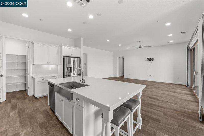 Welcome to 9466 Davenport Circle in Discovery Bay, a stunning 3-bed, 2.5-bath home offering 2,296 sq ft of modern living, built in 2017. Enjoy the expansive great room which connects the living and dining areas to a spacious open kitchen featuring an oversized island, quartz countertops, modern appliances, and a walk-in pantry. Sliding glass doors create a seamless indoor-outdoor flow to the backyard and a dedicated office near the entry provides ideal space for working from home. Wood-look tile flooring runs throughout the main living areas, with ceiling fans in select rooms. The standout primary suite features windows on three walls with pool views, dual vanities, a soaking tub, a spacious frameless shower, and a large walk-in closet. The garage offers a two-car space plus a bonus storage area and ceiling racks. Enjoy an entertainer’s backyard with a pool, spa, gazebo with bar area, and outdoor fireplace, all low maintenance. Solar and a whole house fan add efficiency, and The Lakes gated community offers parks, trails, picnic areas, sports courts, and a dog park with a $215 monthly HOA. Experience Discovery Bay with Delta boating access, marinas, waterfront dining, farmers markets, and local winery events. **Listing is virtually staged