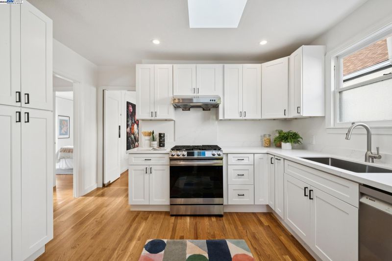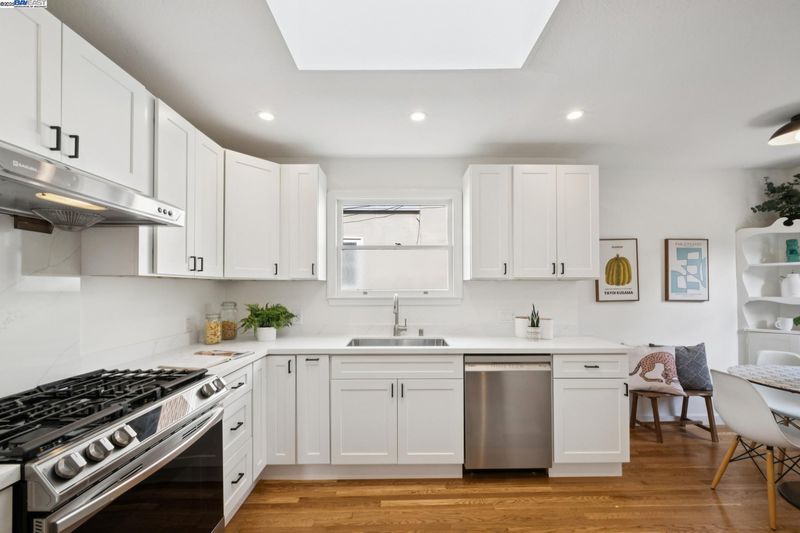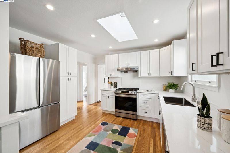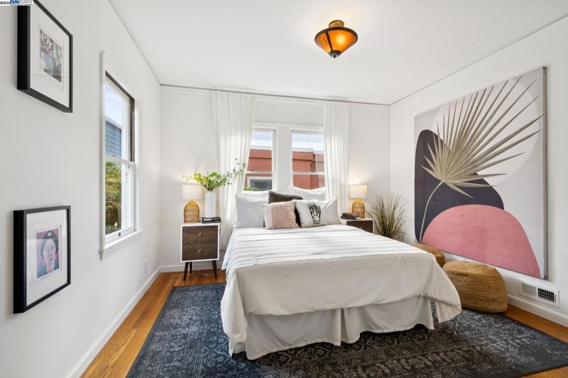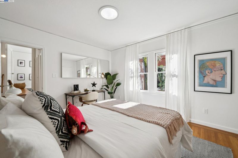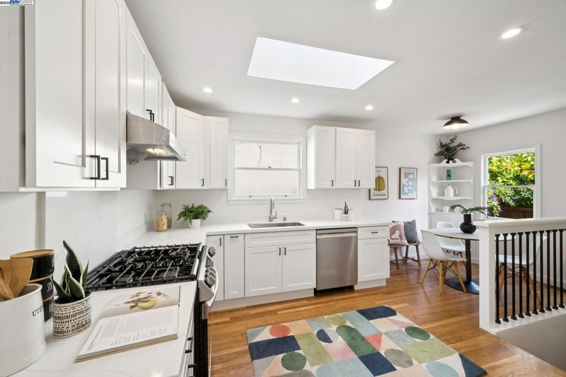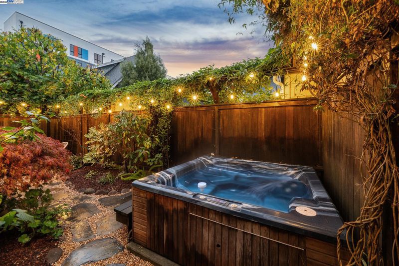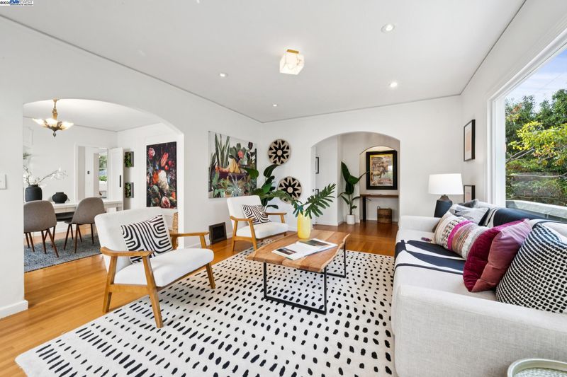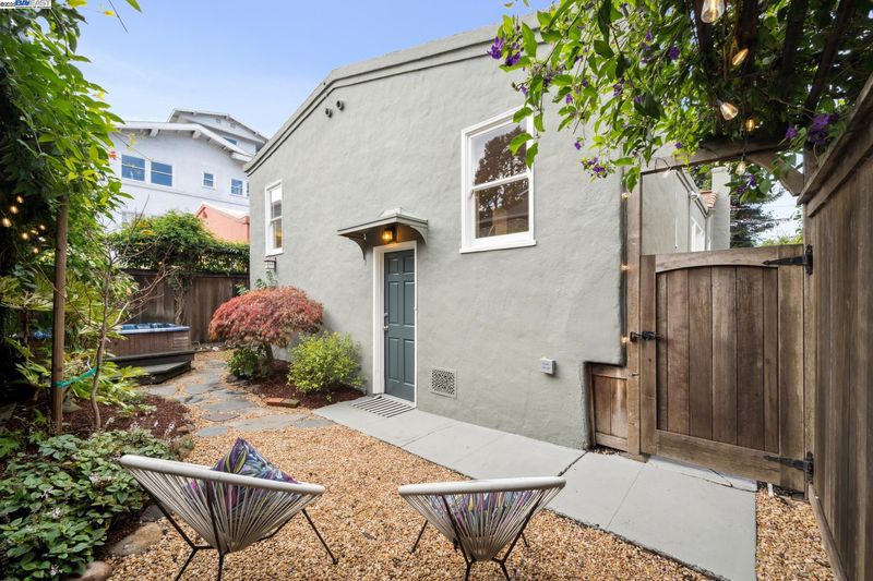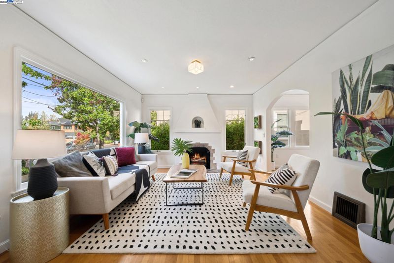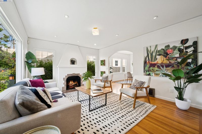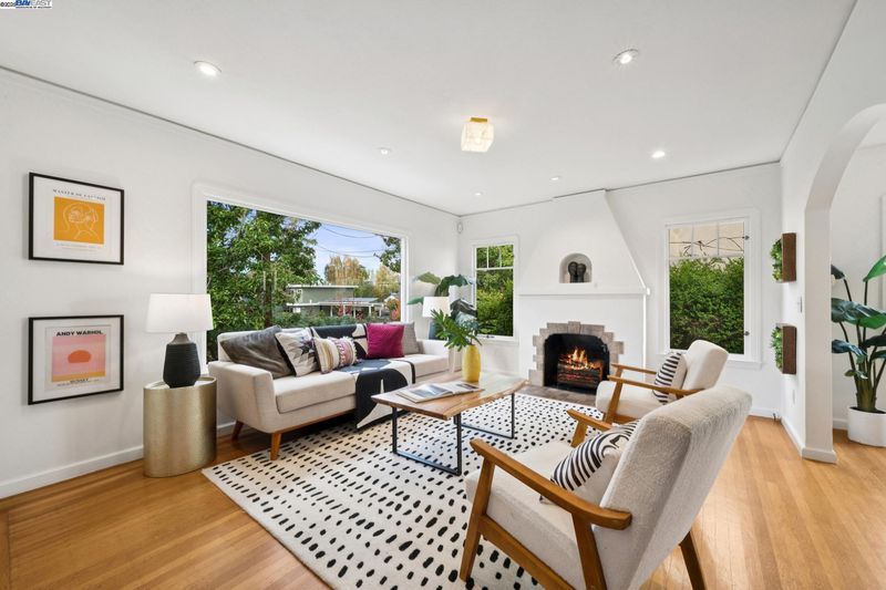 Enjoy easy living in Berkeley’s Lower Elmwood in this fully renovated 2BD/1BA Spanish bungalow, rich with character and enhanced by a flexible bonus space and serene backyard oasis. Known as the Halcyon Commons, a lovely pocket park welcomes you to this 1159 SQFT home. Step inside the gracious foyer which opens to a gorgeous living room where you can relax before the fireplace with a picture window view of the neighboring park. Hardwood floors and crown molding span into the sunny dining room featuring decorative wall box trim and beautiful built-in cabinets with etched glass. Thoughtfully updated, the adjacent eat-in kitchen enjoys new cabinetry, countertops, appliances, recessed lighting, a skylight, and breakfast nook. A few steps up, the primary bedroom offers privacy, while the main level includes a bright second bedroom and a full bath with vintage tiling. From the kitchen, steps lead down to the lush backyard where you can entertain on the patio with flowering vines or unwind in the hot tub. The home’s lower level includes a bonus space with a window ideal for a private office or playroom; a laundry room with sink; and access to the 1- car garage. Whole Foods, Berkeley Bowl, BART, College Ave, Downtown Berkeley, and UC Berkeley are all nearby.