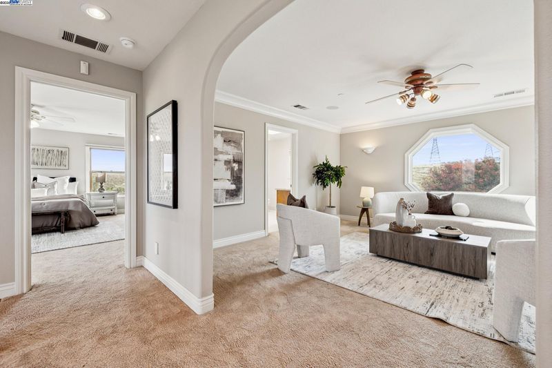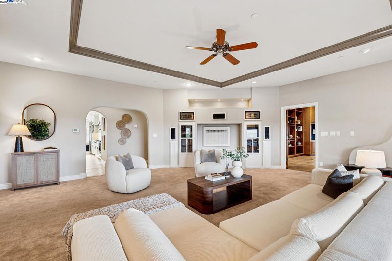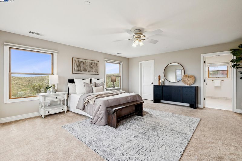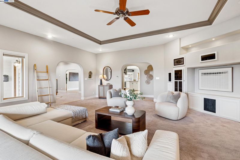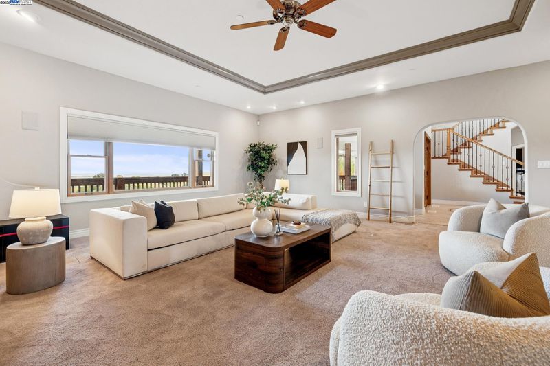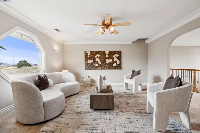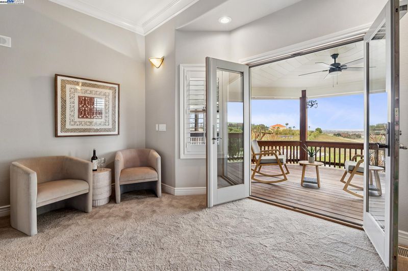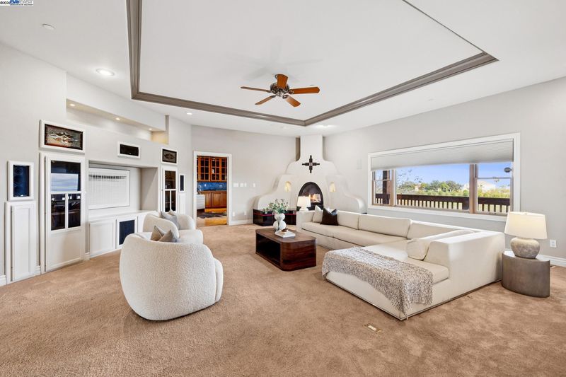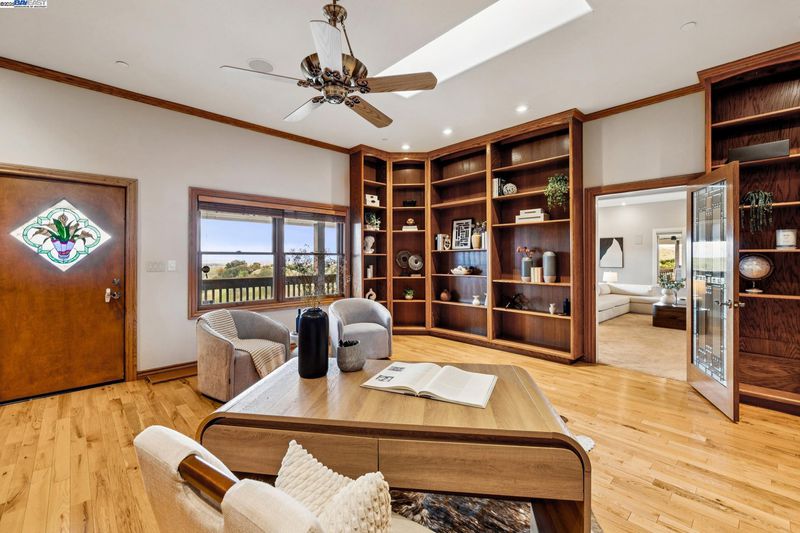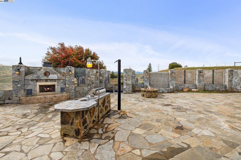 Discover 795 Silver Hills Dr, a custom-built estate in the gated Silver Hills community of Brentwood. Set on a hilltop with expansive views of Mt. Diablo, the Delta, and the Los Vaqueros Watershed, this home offers exceptional privacy while remaining close to Bay Area amenities. The main-level primary suite features a spa-inspired bath and an oversized walk-in dressing room with custom cabinetry. The chef’s kitchen includes premium appliances, abundant counter space, a butcher-block island, and a large pantry. The great room is ideal for gatherings, showcasing a striking fireplace, built-in media center with discreet rear access, and an integrated sound system. Two additional ensuite bedrooms, an open loft, and a dedicated library with handcrafted shelving provide flexible living and work spaces. Situated on over 11 acres, the property features multiple patios and decks, including a 2,400 sq ft quartzite outdoor living area with an outdoor kitchen, windscreen, waterfall feature, fireplace, and fire pit. A detached three-car garage with workshop and full bath, plus owned solar, complete this exceptional property.