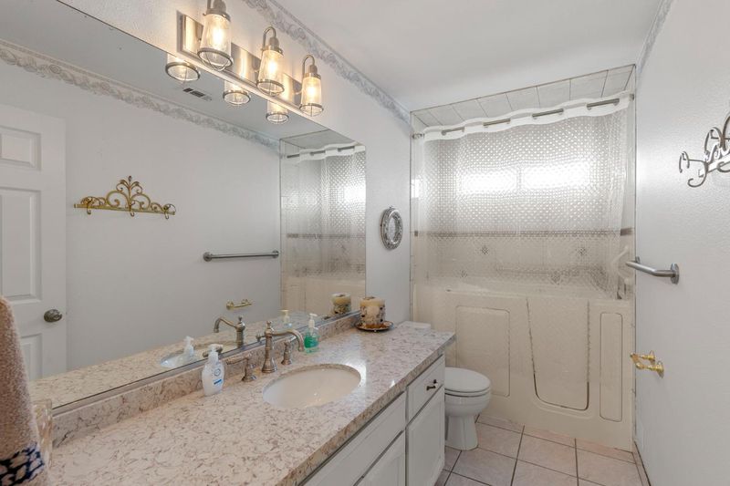 - Double Sinks, Jetted Tub, Stone, Tile, Tub w/Shower Over, Window