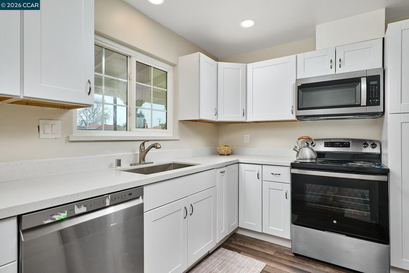 - Dishwasher, Electric Range, Microwave, Gas Water Heater, Stone Counters, Eat-in Kitchen, Electric Range/Cooktop