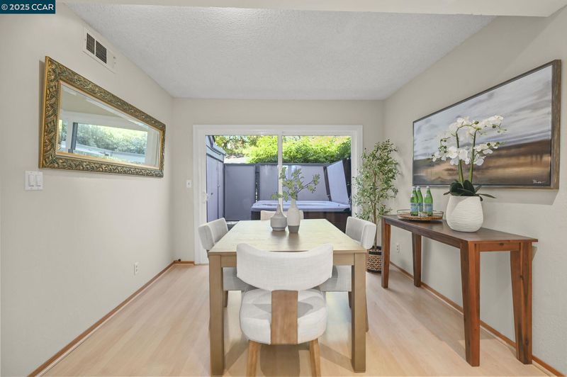 Your dream home awaits!! Light and bright end-unit in a serene Tahoe-like setting with stunning treetop views. Spacious, open floor plan is ideal for hosting upcoming holiday gatherings. Enjoy the cozy fireplace in the living room or gather in the dining room to share a memorable meal. The kitchen features fresh white cabinets, Corian counters and sleek black appliances with easy access to the courtyard patio, perfect for grilling, dining, or relaxing in the bubbling hot tub. Three upstairs bedrooms share a pass-through bathroom and include a primary suite with separate vanity, multiple closets, and private deck overlooking the tranquil natural setting—ideal for morning coffee. Attention to detail and stylish updates include gorgeous wood-look flooring, and chic lighting for a modern touch. Indoor laundry and half bath on the lower level. Abundant storage throughout. Community pool and tennis courts. Conveniently located in the sought-after Vine Hill area on the Pleasant Hill/Martinez border, with easy access to great schools, shopping, transportation, parks, hiking trails, downtown Martinez, and the best the East Bay. This beautiful townhome checks all the boxes! Open House Sat and Sun 1-3.