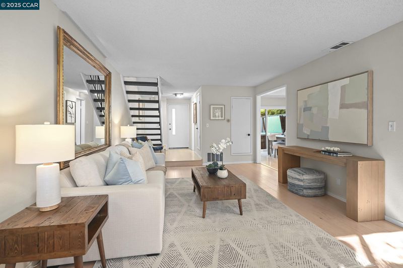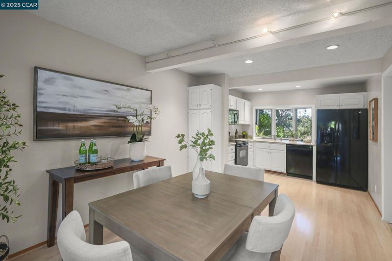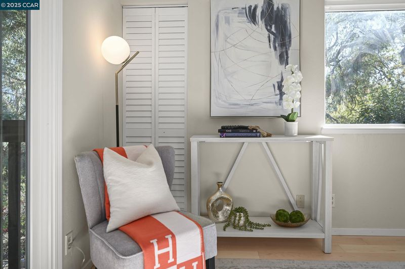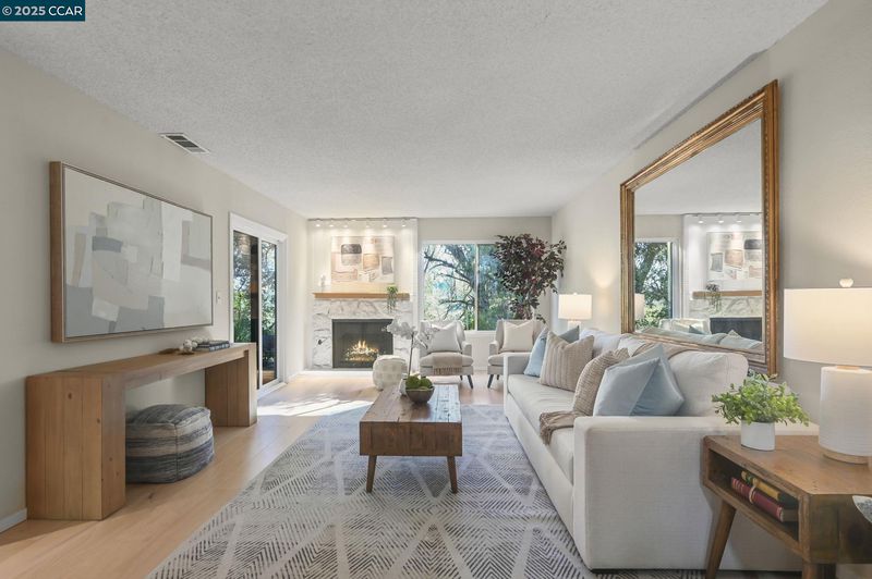 Your dream home awaits!! Light and bright end-unit in a serene Tahoe-like setting with stunning treetop views. Spacious, open floor plan is ideal for hosting upcoming holiday gatherings. Enjoy the cozy fireplace in the living room or gather in the dining room to share a memorable meal. The kitchen features fresh white cabinets, Corian counters and sleek black appliances with easy access to the courtyard patio, perfect for grilling, dining, or relaxing in the bubbling hot tub. Three upstairs bedrooms share a pass-through bathroom and include a primary suite with separate vanity, multiple closets, and private deck overlooking the tranquil natural setting—ideal for morning coffee. Attention to detail and stylish updates include gorgeous wood-look flooring, and chic lighting for a modern touch. Indoor laundry and half bath on the lower level. Abundant storage throughout. Community pool and tennis courts. Conveniently located in the sought-after Vine Hill on the Pleasant Hill/Martinez border.