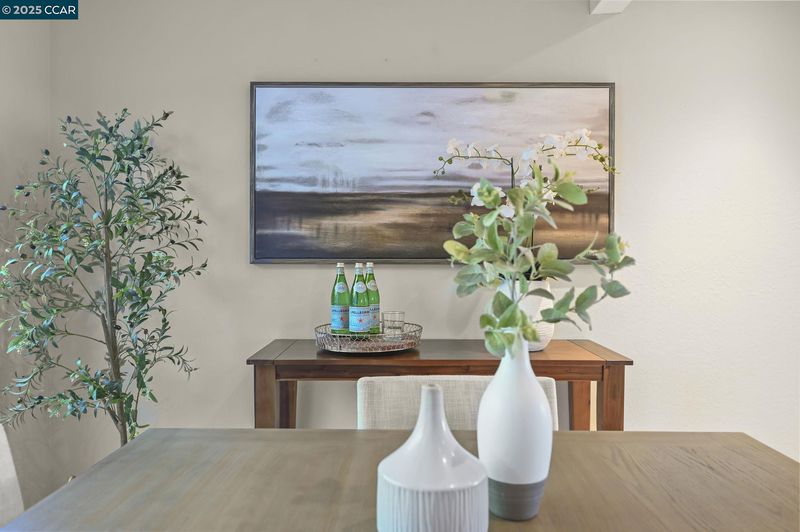 Your dream home awaits!! Light and bright end-unit in a serene Tahoe-like setting with stunning treetop views. Spacious, open floor plan is ideal for hosting upcoming holiday gatherings. Enjoy the cozy fireplace in the living room or gather in the dining room to share a memorable meal. The kitchen features fresh white cabinets, Corian counters and sleek black appliances with easy access to the courtyard patio, perfect for grilling, dining, or relaxing in the bubbling hot tub. Three upstairs bedrooms share a pass-through bathroom and include a primary suite with separate vanity, multiple closets, and private deck overlooking the tranquil natural setting—ideal for morning coffee. Attention to detail and stylish updates include gorgeous wood-look flooring, and chic lighting for a modern touch. Indoor laundry and half bath on the lower level. Abundant storage throughout. Community pool and tennis courts. Conveniently located in the sought-after Vine Hill on the Pleasant Hill/Martinez border. Open Sat & Sun 1-3.