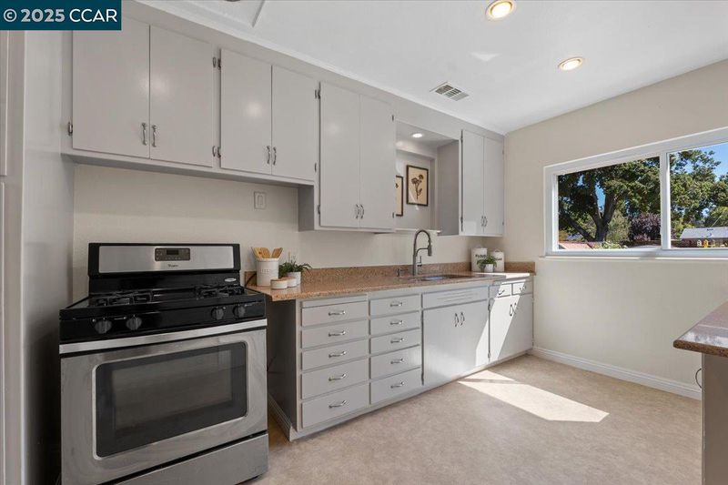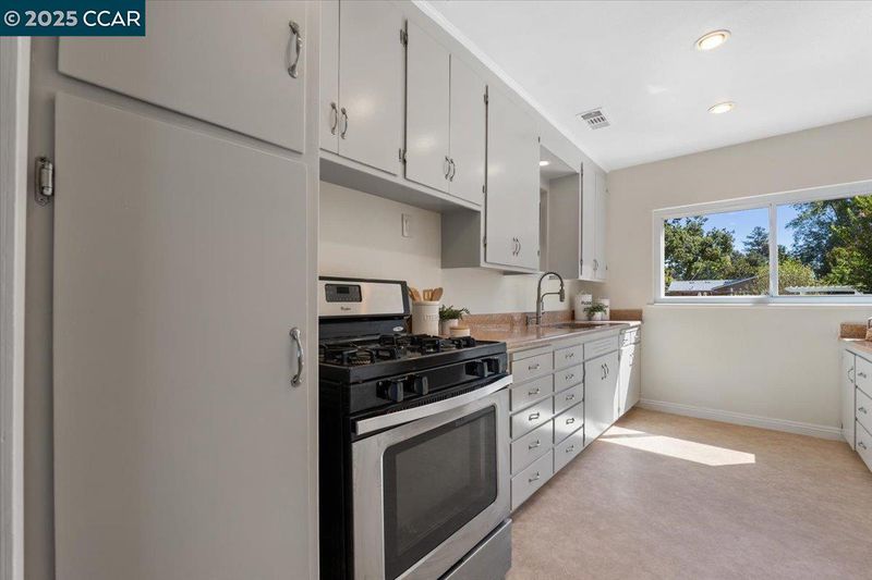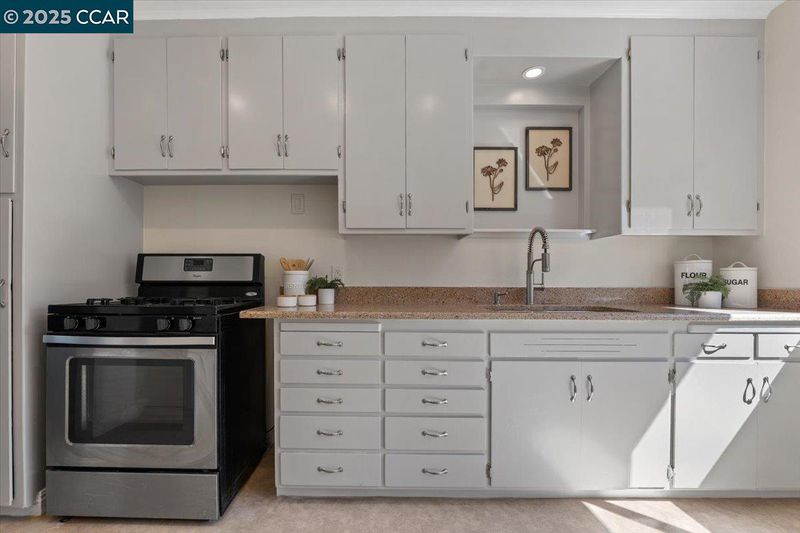 - Gas Range, Gas Water Heater, Counter - Solid Surface, Gas Range/Cooktop