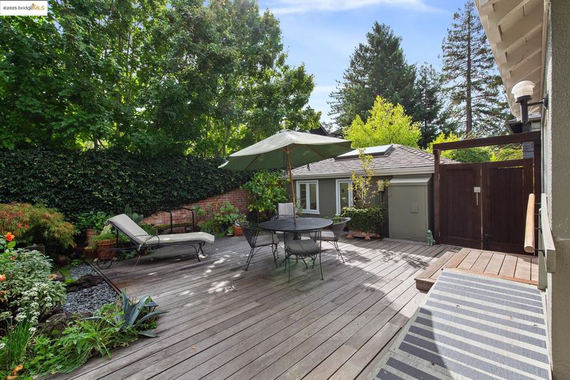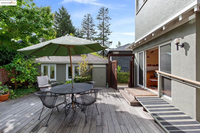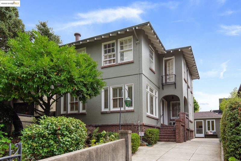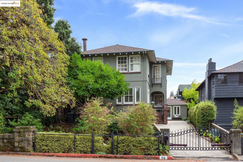On the bank of Harwood Creek in one of Berkeley’s most beautiful neighborhoods close to all the pleasures of the Claremont, 20 Oakvale Avenue offers elegant early 20th Century architecture, extensive 21st Century renovations, and quiet, leafy seclusion. From the original 1910 design by builder Louis Engler to the extraordinary 2015 kitchen designed by Bennett Christopherson, this home combines easy, modern living with classic architectural details. The gracious central hallway is flanked by the living and dining rooms, each with a fireplace, high coved ceiling, and a wall of windows. The dining room opens through the TV sitting room to the walled, landscaped rear deck beyond, itself a lovely outdoor room. The kitchen - large, handsome, and filled with light from lofty clerestory windows - invites informal gatherings and serious cooks. Ascend the central staircase to three bedrooms and two bathrooms, including the expansive primary suite with bright rear sunroom, sweet front balcony alcove, and spacious, updated bathroom. Or take the elevator, which opens to the driveway, the dining room, and the primary suite. Off the rear deck, converted in 2023 from the original garage, the fully permitted studio ADU with kitchen, laundry and bathroom invites income, guests or caregivers.