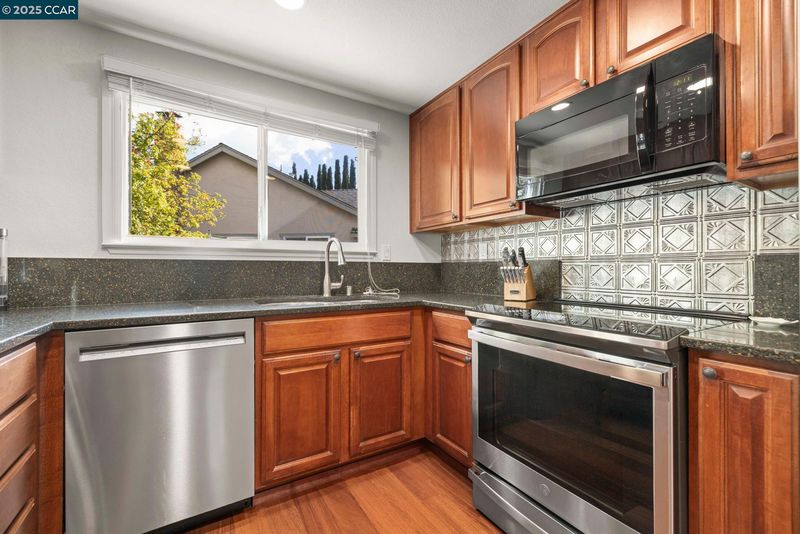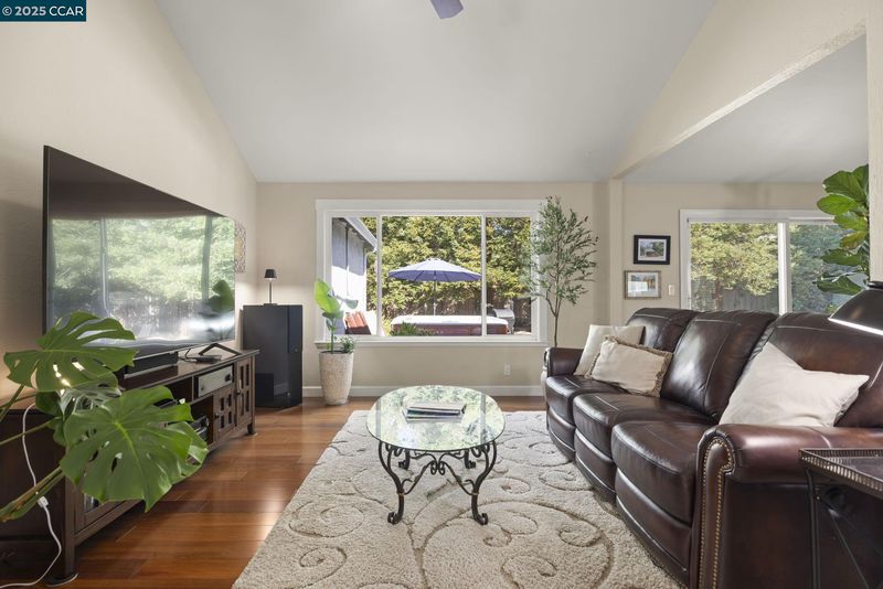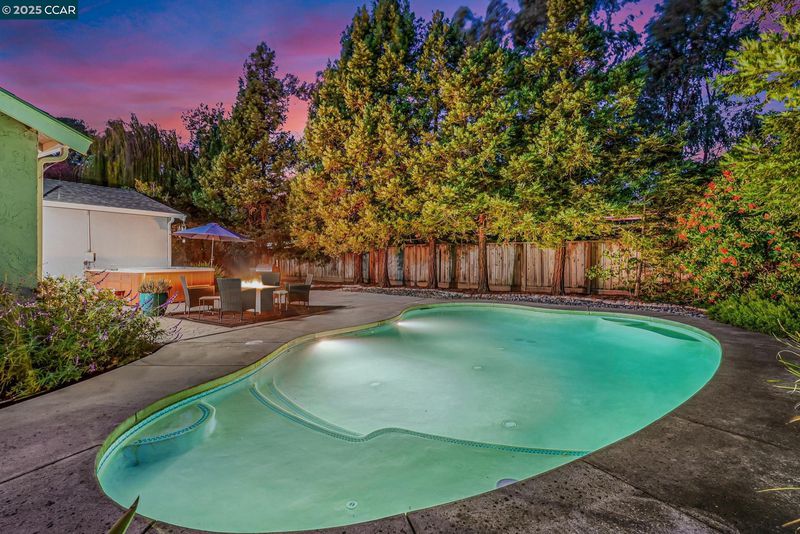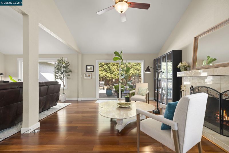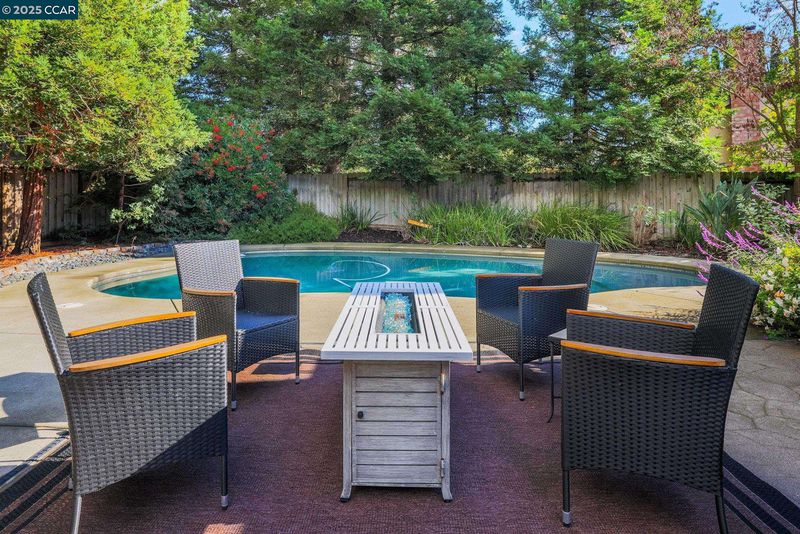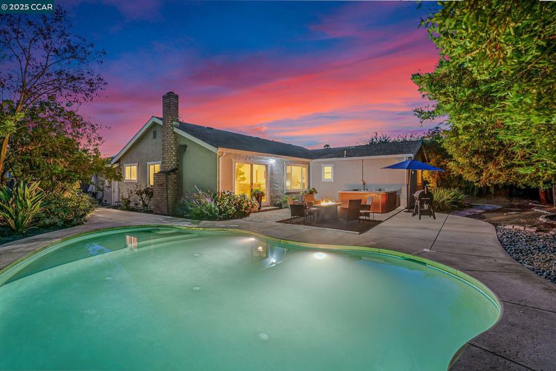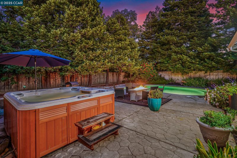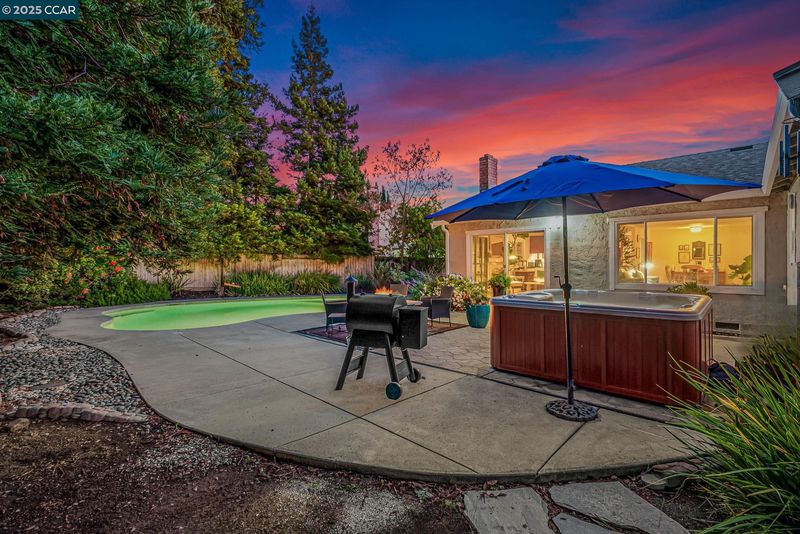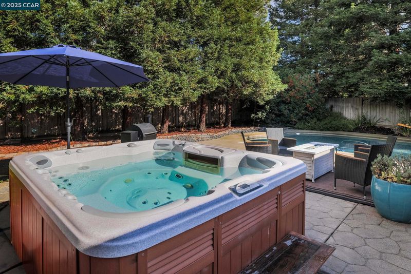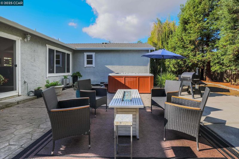 Welcome to this beautifully updated Benicia home offering bright, open living spaces and a stunning backyard retreat. The living room features vaulted ceilings and a wood-burning fireplace, which flows seamlessly into the formal dining room—ideal for hosting and everyday living. The upgraded kitchen is complete with stainless steel appliances, a new induction stove and dishwasher, and recessed can lighting with dimmer controls for the perfect ambiance. The home offers large and spacious bedrooms, including one with built-in cabinetry that works perfectly as a home office. Additional conveniences include a dedicated laundry room, an ADT security system, a brand-new Nest thermostat, and leased solar to help reduce monthly utility costs. The backyard is a true highlight of the property, featuring a sparkling pool and hot tub. Gorgeous trees line the perimeter of the backyard for additional privacy. The garage has been upgraded with a replaced electrical subpanel and a newer water heater, making this home as func