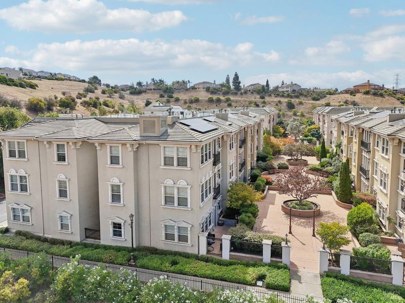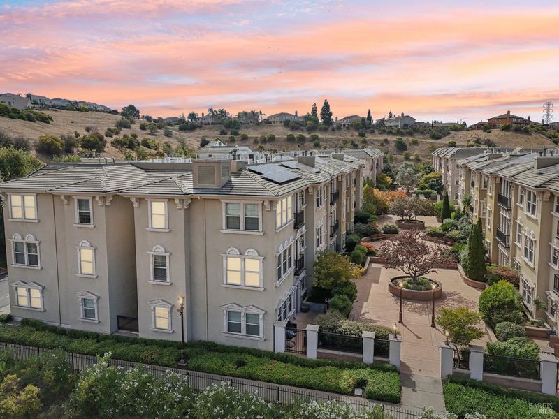 Welcome to Belvedere! A Gated Community with year round Resort-Style Amenities! This desirable ground-floor end unit offers a private patio and extra windows showcasing beautiful views of the rolling hills. The well-designed layout features two spacious bedrooms and two full baths positioned on opposite sides of the home for optimal privacy. The inviting living room with a gas fireplace flows seamlessly into the modern kitchen, complete with custom cabinetry, stainless steel appliances, and elegant countertops. Additional highlights include hardwood flooring, crown molding throughout, in-unit laundry, and central air conditioning for year-round comfort. Enjoy the convenience of two assigned underground parking spaces and access to the community's extensive amenities including a state-of-the-art fitness center, indoor pool and spa, clubhouse with kitchen, game and poker rooms, lounge areas, and outdoor BBQ spaces perfect for gatherings. Experience the perfect blend of luxury and comfort ~ Welcome Home to Belvedere!