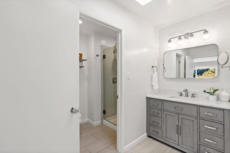 Tucked away on a quiet street, this beautifully updated three-bedroom, two-and-a-half-bath home offers the comfort and feel of a single-family residence, complete with a two-car garage and private driveway. Hardwood floors run throughout, complemented by high ceilings in the living room, recessed lighting, skylights, and abundant natural light that fills the home. The remodeled kitchen features newer fixtures and appliances, creating a modern and functional space for everyday living and entertaining. The spacious primary suite serves as a peaceful retreat with a remodeled bathroom, two closets, and a private deck. The oversized secondary bedroom also includes two closets and the third bedroom offers a convenient office nook. Freshly painted and thoughtfully. Dual-pane windows and updated finishes throughout, the home also boasts a large, sunny back patio perfect for outdoor dining and relaxation, making this move-in-ready property a rare blend of privacy, style, and livability. Common area includes a swimming pool, beautifully landscaped grounds with fruit trees, and a basketball court. Minutes from both downtown Redwood City and Menlo Park.