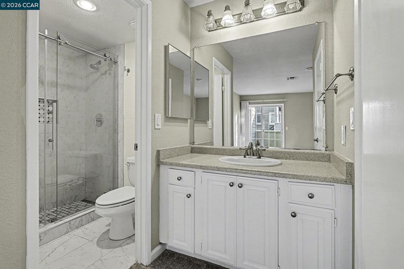 Rare, townhouse-style 2 bed, 2.5 bath condo in Shadow Woods! Open floor plan on first floor with living room, dining room, and spacious kitchen. Relax with fireplace in the living room and access to lower patio for outdoor entertainment. Updated kitchen with quartz countertops, plenty of cabinet storage, stainless steel appliances, and garden window above large single basin sink. First floor also boasts half bath and laundry room. Each bedroom is spacious and has its own updated bathroom and walk-in closet. Upper patio deck is nestled between the bedrooms for sunlight and enjoyment. Enjoy access to Tennis courts, exercise facility, pool and spa, sauna, and playground amenities just steps away. Two assigned parking spots, one with carport coverage. Close to freeway access and hiking trails. Enjoy your getaway from the everyday!