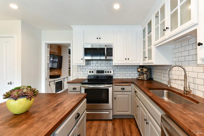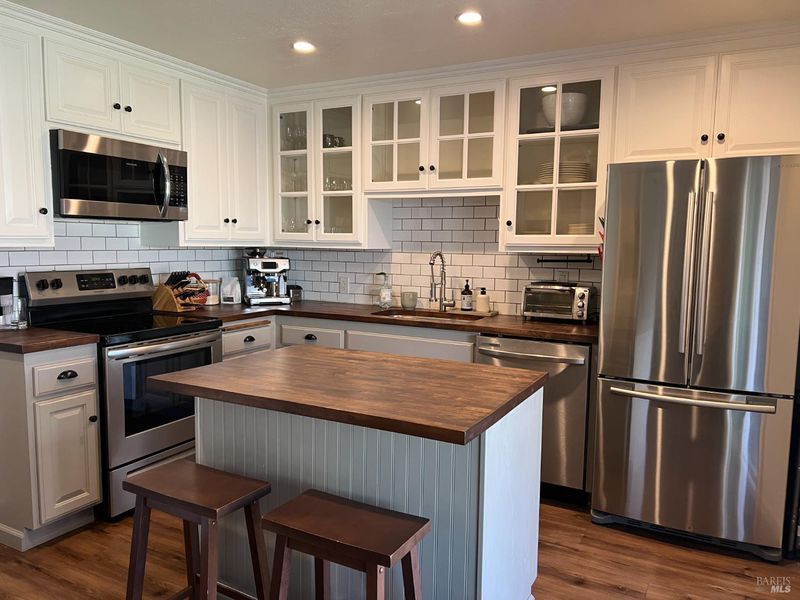 - Breakfast Area, Island, Pantry Closet, Wood Counter