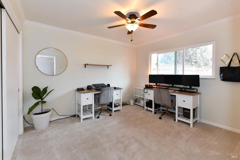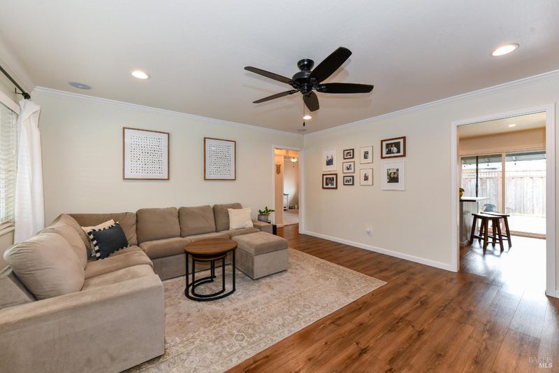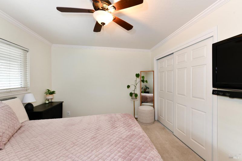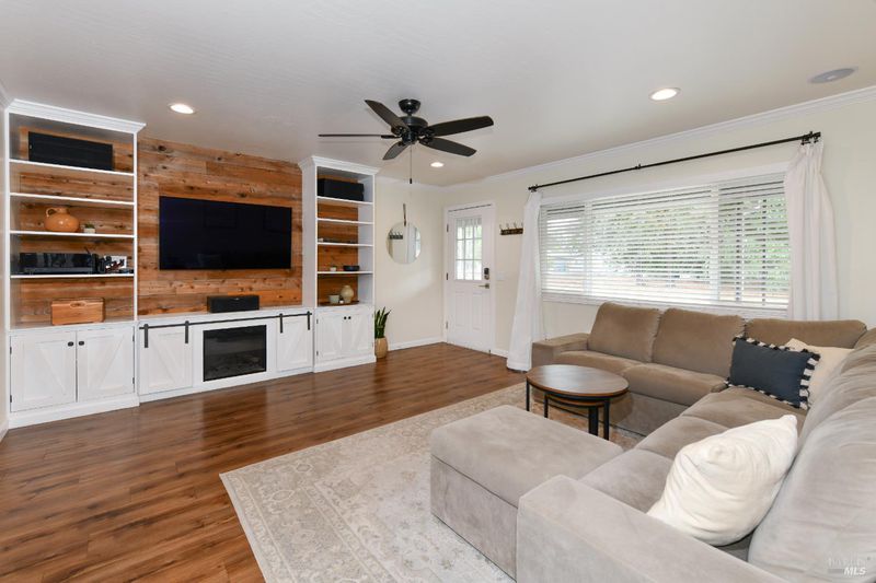 Single-Story Condo in Larkfield's Maples Court This two-bedroom, 1 bed 1.5 bath home features a thoughtful floor plan with a wall of built-in shelving, pantry, and linen closet. The laundry room with washer and dryer provides direct access to the attached one-car garage. Enjoy a private backyard with low-maintenance simulated grass, perfect for relaxing or entertaining. Conveniently located near Luther Burbank Center for the Arts, with Molsberry's Market close by and quick access to Highway 101. HOA dues include water, garbage, roof, exterior, and front-yard landscaping.