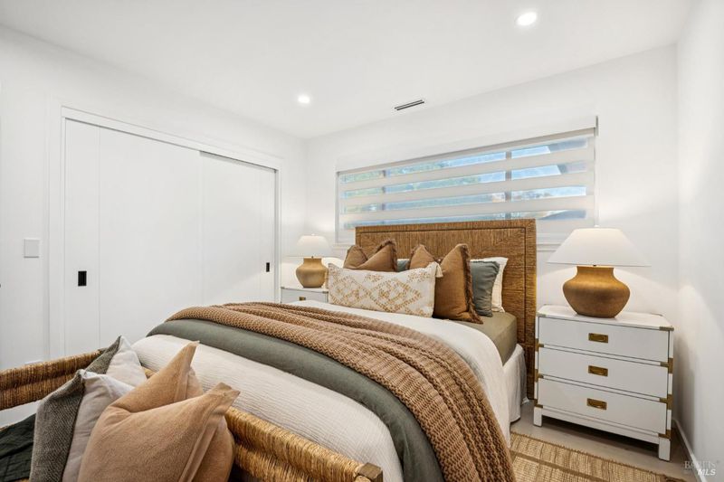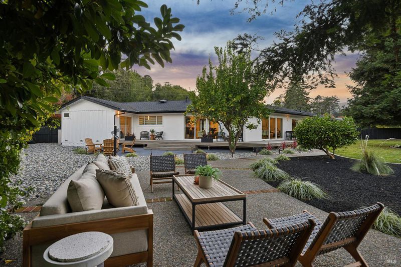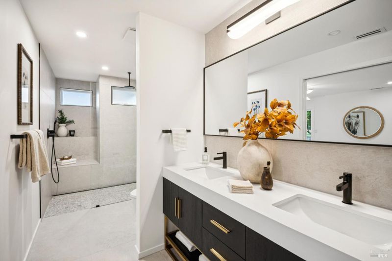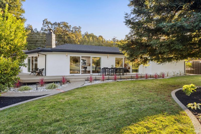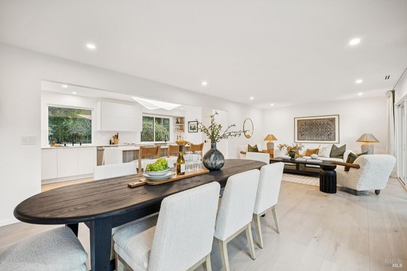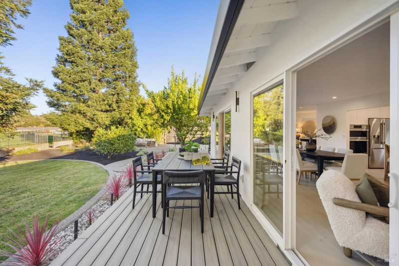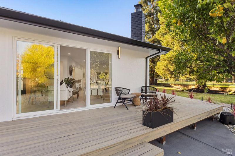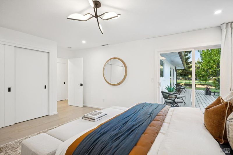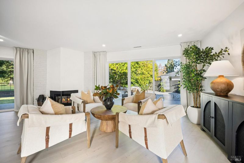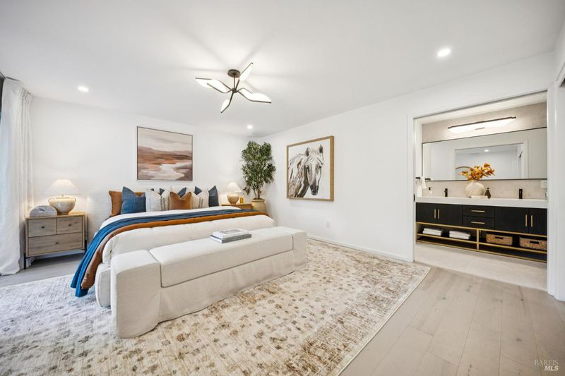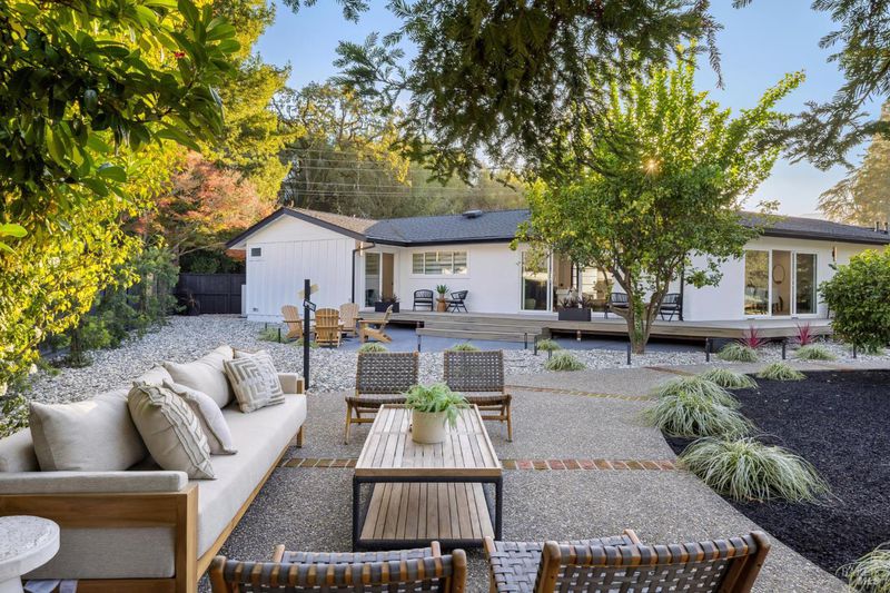 Impeccably remodeled single-level home showcasing modern design, high-end upgrades, and direct views of the Marin Country Club golf course. This 3 bedroom, 3.5 bath residence features new Canadian Maple engineered hardwood floors, smooth-wall finish, solid core doors, and modern dual-pane, energy-efficient doors and windows. The chef's kitchen offers Euro frameless cabinetry, Quartz LumaLuxe countertops, an 8' waterfall island, designer stainless appliances, induction cooktop, and a concealed Zephyr Lift downdraft. A custom bar area with sink and dual-zone beverage refrigerator enhances effortless entertaining. The luxury bathrooms highlight Italian porcelain tile and Hansgrohe fixtures, with heated floors in the primary suite. Additional upgrades include all-new plumbing, new insulation, a 200-amp solar-ready electrical system, Lutron lighting controls, modern LED lighting, a Mitsubishi heat pump, EV charger, and a sleek insulated steel garage door. Walls of sliders create seamless indoor-outdoor flow to a spacious backyard featuring new drought-tolerant landscaping, smart irrigation, landscape lighting, and new fencing. A new semi-circle estate driveway and custom wood details elevate curb appeal. A move-in-ready modern retreat offering elevated living on a quarter-acre lot!