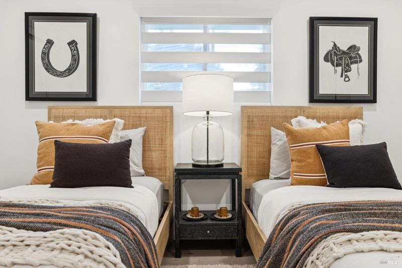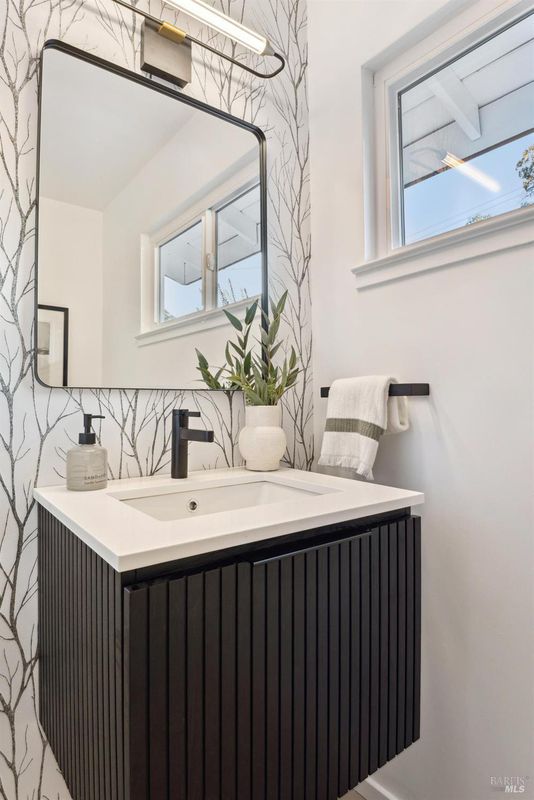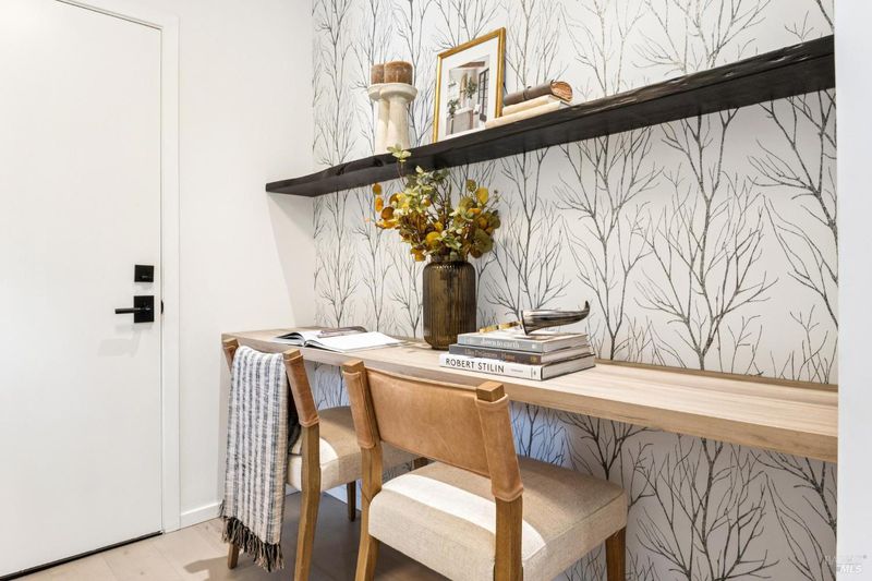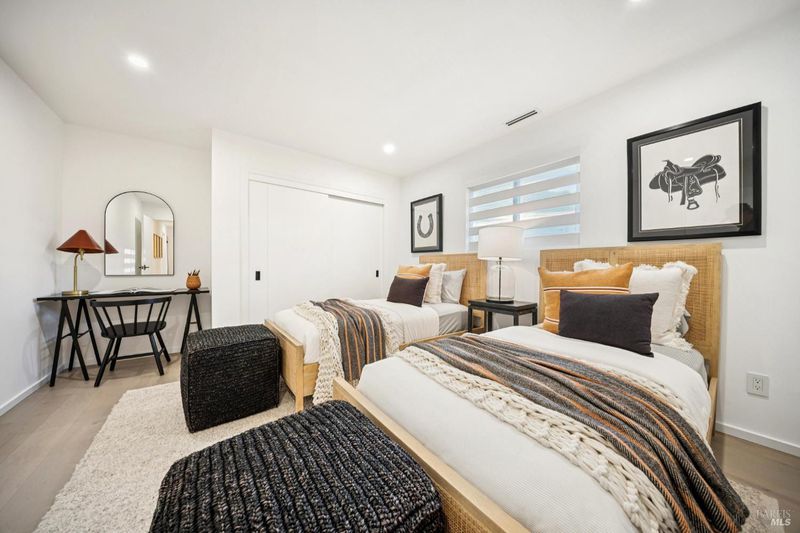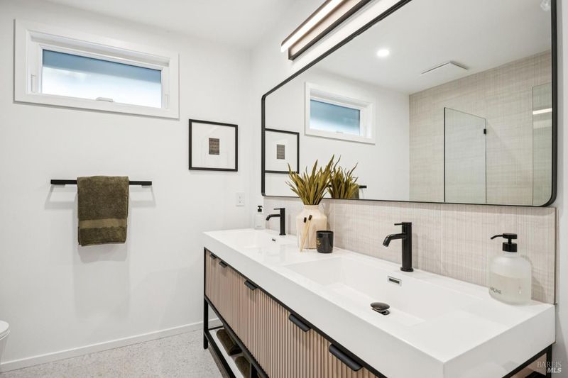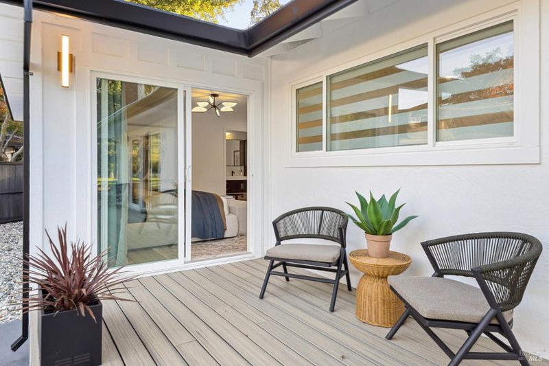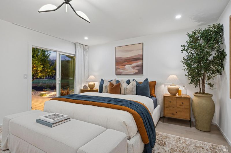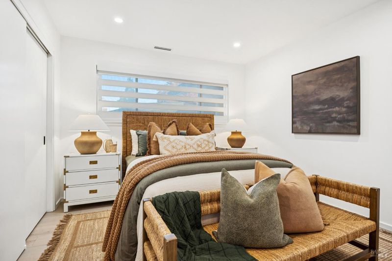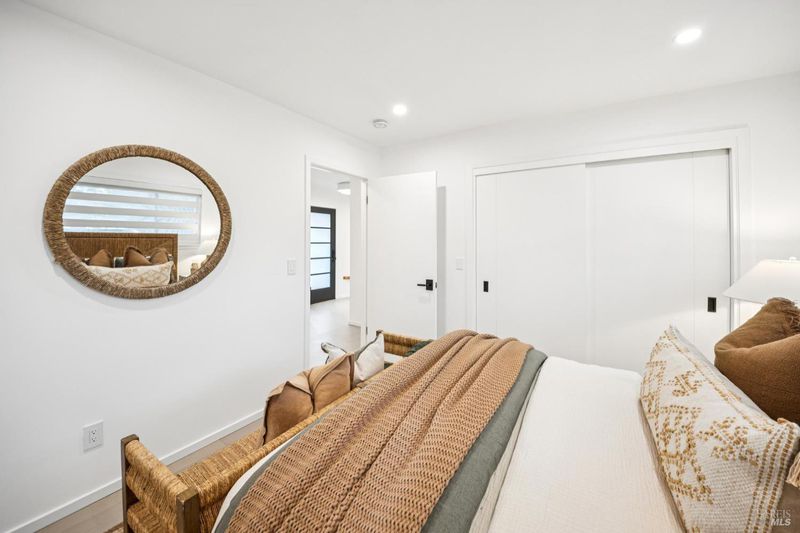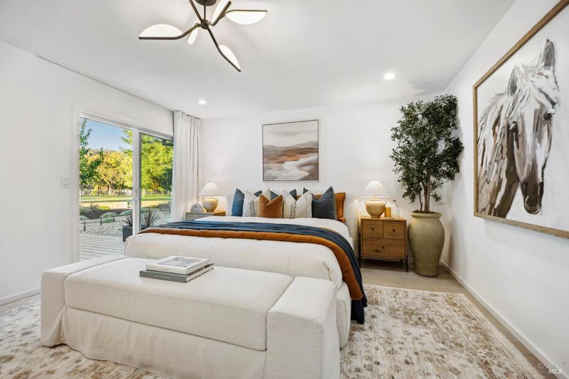 Impeccably remodeled single-level home showcasing modern design, high-end upgrades, and direct views of the Marin Country Club golf course. This 3 bedroom, 3.5 bath residence features new Canadian Maple engineered hardwood floors, smooth-wall finish, solid core doors, and modern dual-pane, energy-efficient doors and windows. The chef's kitchen offers Euro frameless cabinetry, Quartz LumaLuxe countertops, an 8' waterfall island, designer stainless appliances, induction cooktop, and a concealed Zephyr Lift downdraft. A custom bar area with sink and dual-zone beverage refrigerator enhances effortless entertaining. The luxury bathrooms highlight Italian porcelain tile and Hansgrohe fixtures, with heated floors in the primary suite. Additional upgrades include all-new plumbing, new insulation, a 200-amp solar-ready electrical system, Lutron lighting controls, modern LED lighting, a Mitsubishi heat pump, EV charger, and a sleek insulated steel garage door. Walls of sliders create seamless indoor-outdoor flow to a spacious backyard featuring new drought-tolerant landscaping, smart irrigation, landscape lighting, and new fencing. A new semi-circle estate driveway and custom wood details elevate curb appeal. A move-in-ready modern retreat offering elevated living on a quarter-acre lot!