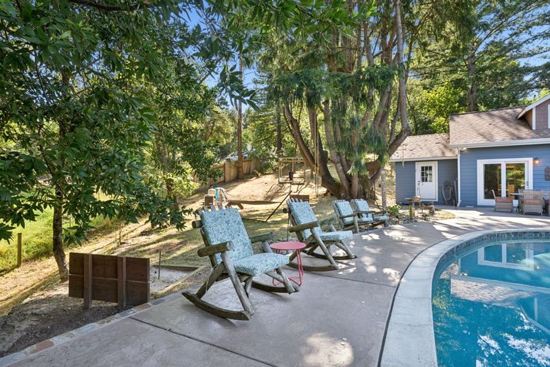 Welcome to 25560 Firhaven Lane - Your serene mountain retreat in the heart of the Los Gatos Mountains. This fully remodeled 5-bed, 3.5-bath home is perfectly situated at the end of a quiet cul-de-sac within a coveted Firewise community. Set on over an acre, the property blends modern upgrades with natural tranquility. Inside, the living room features vaulted ceilings, exposed beams, and a cozy wood-burning stove, creating a warm and inviting ambiance. The chef's kitchen boasts granite countertops, stainless steel appliances, and ample space for entertaining. The luxurious primary suite offers a spa-like en-suite bath, walk-in closet, and dedicated makeup area. Additional bedrooms are thoughtfully designed for comfort and functionality. Outside, enjoy a sparkling pool, hot tub, expansive deck for gatherings, and even a charming chicken coop. A whole-house generator, durable cement siding, newer roof, and a high producing private well ensure peace of mind. Located approx. 5 minutes from The Summit Store, 20 minutes from Downtown Los Gatos, and within the highly acclaimed Los Gatos school district, this home offers a perfect blend of mountain charm and modern convenience. A piece of paradise like this doesn't present itself often and now is your opportunity to make this your home!