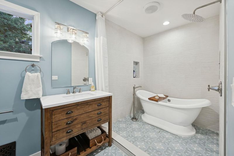 - Full on Ground Floor, Half on Ground Floor, Primary - Stall Shower(s), Shower and Tub, Solid Surface, Stall Shower - 2+, Tile, Tub, Updated Bath