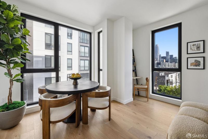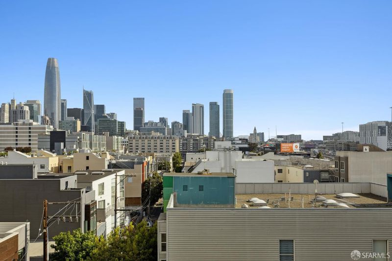 One-bedroom residence with quiet street exposure and views toward downtown San Francisco and the Salesforce Tower. The living area opens to a spacious private balcony, perfect for morning coffee or evening sunsets against the skyline. Elevated above surrounding streets, the home offers a serene setting with the bustling city at your feet. Interior finishes include quartz countertops, white oak flooring, and a streamlined kitchen equipped with a gas range and integrated Bosch dishwasher. Central air conditioning and heating ensure comfort in every season. Residents enjoy an attended lobby and a rooftop terrace with panoramic city views, seating areas, outdoor grills, and a dedicated dog relief area. Secure bicycle storage and smart entry via the Latch system complete this thoughtfully designed home.