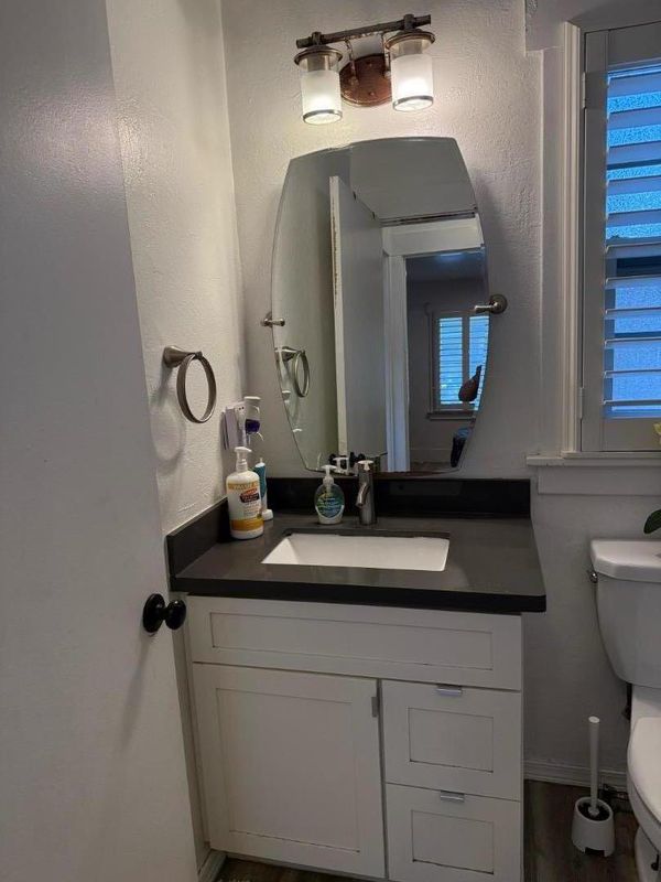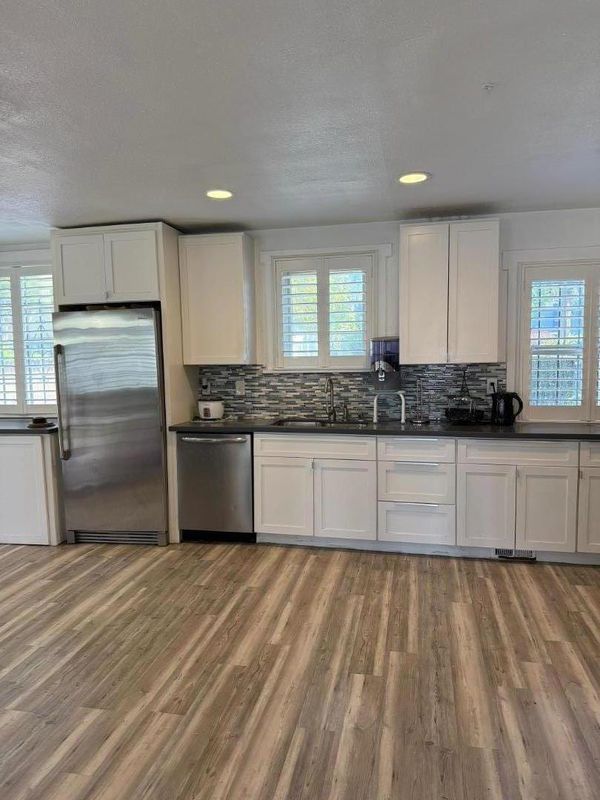 Welcome to this beautifully updated 2-bedroom, 1-bath home featuring a modern open floor plan and stylish finishes throughout. The kitchen is equipped with sleek quartz countertops, stainless steel appliances, and an elegant backsplash, seamlessly combining functionality with contemporary design. Enjoy luxury laminate vinyl plank flooring, in-unit washer and dryer conveniently tucked under the countertop, and two spacious storage sheds in the large backyard perfect for extra space or hobbies. Centrally located in a high-demand commercial area of downtown Hayward, this property offers unbeatable access to local shops, banks, restaurants, and public transportation. Perfect for those seeking the ideal balance of residential comfort and urban convenience.