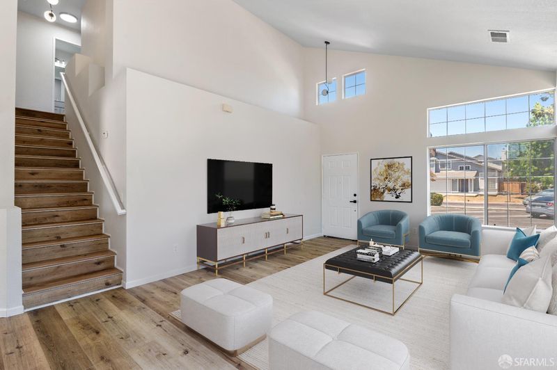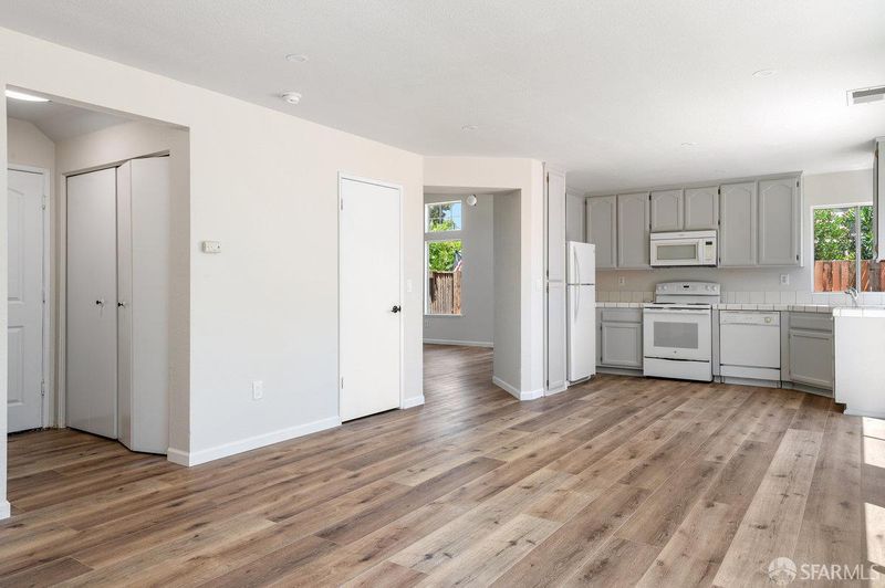 This charming 3BR/2.5BA home offers the perfect blend of comfort and functionality across two levels. Once inside, you are greeted by a great room comprised of a formal living and dining area with soaring ceilings and an abundance of natural light. The open kitchen flows effortlessly into the family room where a cozy fireplace welcomes you. Upstairs, the generous primary bedroom has an en-suite bath while two additional bedrooms offer flexibility for family, guests or a home office. Step outside to enjoy a sizable backyard ready for your dream garden, play area or ideal entertaining space. You'll appreciate the convenience of a 2-car side-by-side garage with plenty of space in the driveway. New LVP floors, new interior paint and new light fixtures add to the contemporary feel. Nestled in an established Antioch neighborhood, this home offers a striking balance of suburban tranquility and everyday convenience. Enjoy easy access to Slatten Ranch and Streets of Brentwood shopping centers, Trader Joe's, Walmart, schools and local parks. Nearby access to HWY-4 and BART ensures a smooth commute around the Bay Area. $10,000 SparkPoint Grant available towards down payment and closing costs with US Bank for eligible first time home buyers with no income limits!