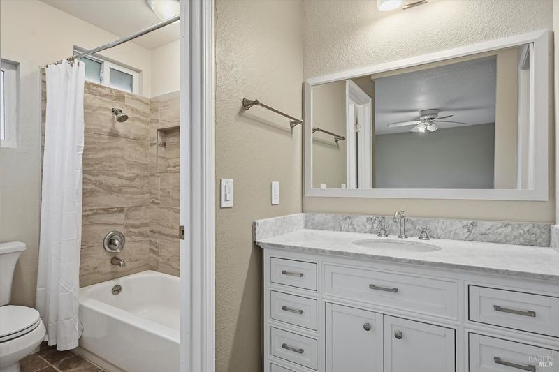 Welcome to 16561 Hacienda Ct. in Hidden Valley Lakea beautifully refreshed home on nearly half an acre at the end of a peaceful court. This move-in ready property features fresh paint, new light fixtures throughout, and an inviting interior that begins with hardwood flooring in the entry, dining room, and kitchen. The spacious living room offers vaulted ceilings that enhance the natural light and openness of the space. The updated kitchen includes quartz countertops, ample cabinetry, a large pantry cabinet, and a propane range, with French doors that open to a generous composite deck showcasing expansive mountain views. The primary bedroom also features French doors leading to the deck, creating a seamless indoor-outdoor connection, and its en-suite bath is appointed with a marble vanity, tiled spa shower and fresh finishes. The walk-in closet is sure to please! Two additional bedrooms provide comfortable flexibility for family, guests, or office space, accompanied by an updated hall bath with another marble vanity. Outside, the nearly half-acre parcel offers room to garden, relax, or entertain, complemented by a new retaining wall in the front yard for both beauty and function. This home combines modern upgrades, classic comfort, and serene surroundings.