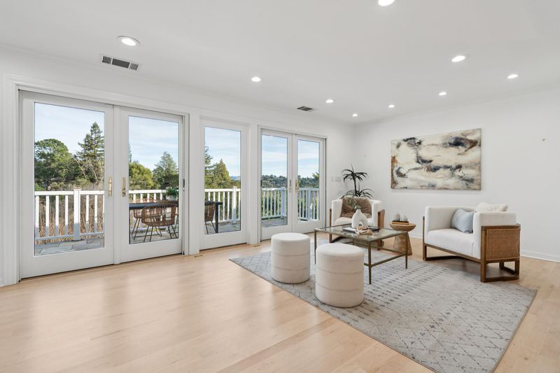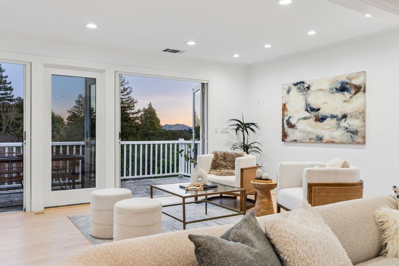 Gated and private with sweeping views, this home has been extensively and sleekly upgraded since 2024. Nestled in the desirable Orinda Country Club neighborhood, the ~3,000-sq ft residence features four bedrooms and 3.5 baths across an airy, open floor plan. Light pours into open living, lounging, and dining areas. The professionally designed chef's kitchen connects seamlessly to the dining room and showcases custom cabinetry and high-end appliances. The living room centers on a gas fireplace with porcelain surround, while the family room boasts bespoke built-in storage, a wine fridge, and wall of glass that opens to a deck with dramatic outlooks. The main level includes the primary suite with a marble bath and dual walk-in closets, a secondary bedroom, and a show-stopping powder room. Downstairs, find two additional bedrooms; one with built-ins and Murphy bed, the other with an ensuite bath plus a hall bath, laundry, storage, and a versatile bonus room. Polished, private, and brimming with designer details, this Orinda gem also offers custom closets, a walk-in pantry, fruit trees, and well-tended outdoor spaces. Just minutes from BART, top-rated schools, trails, restaurants, and shopping. This is modern living at its best.