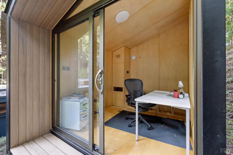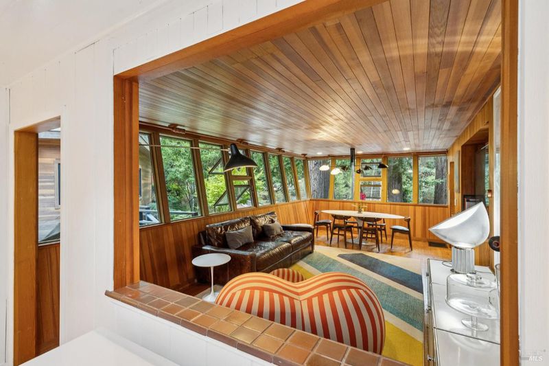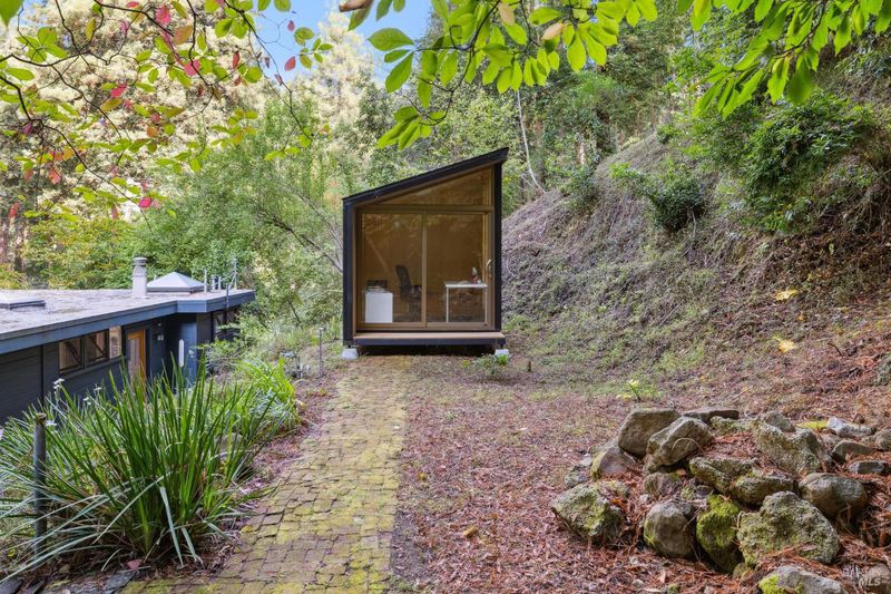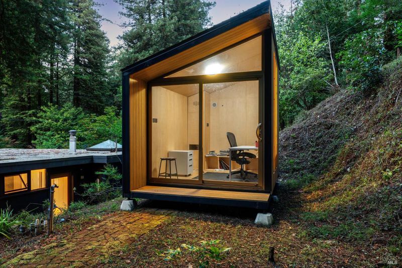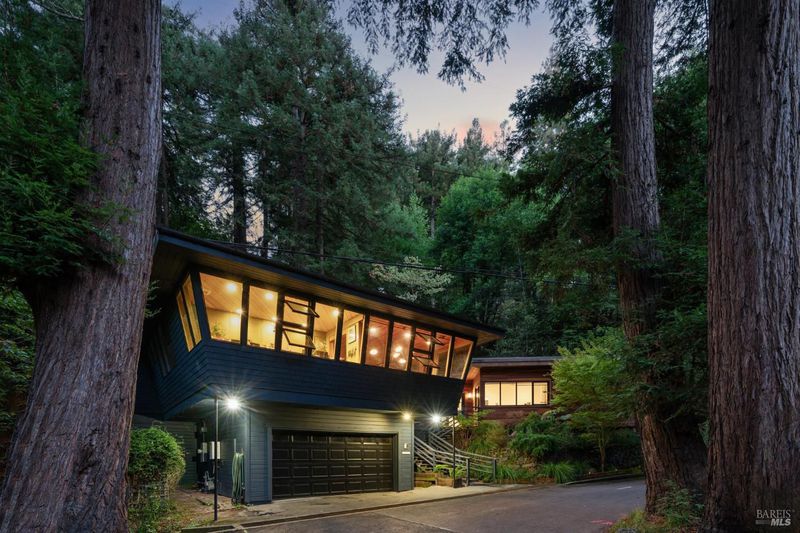 This beautifully preserved and expanded mid-century home offers village living located only a short distance from downtown Mill Valley. Combining architectural character, including wood paneled walls and an efficient floor plan, this home is a peaceful retreat where you may unwind among the redwoods. Set in the heart of Blithedale Canyon, this timeless home seamlessly integrates nature and design. Large wrap-around canted windows frame serene views, allowing the beauty of the outdoors to become part of everyday life, extending into the kitchen. The main living area is warm and inviting, featuring natural materials, classic mid-century lines, and built-in details. The bedrooms overlook sunlit patios and garden paths, ideal for morning coffee, outdoor dining, or quiet, private reflection under the trees. A thoughtfully designed 2019 expansion added two additional bedrooms while maintaining harmony with the home's original character. A detached office in the backyard is a private workspace or creative studio surrounded by greenery. With only 2 owners since its construction in 1950, this home reflects a rare continuity of care and preservation. A garage and easy access to nearby trails, this property perfectly balances convenience and tranquility.