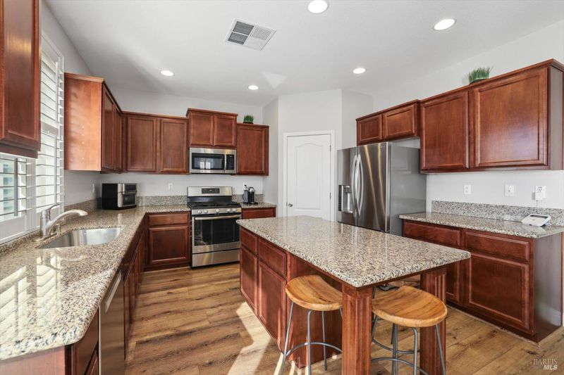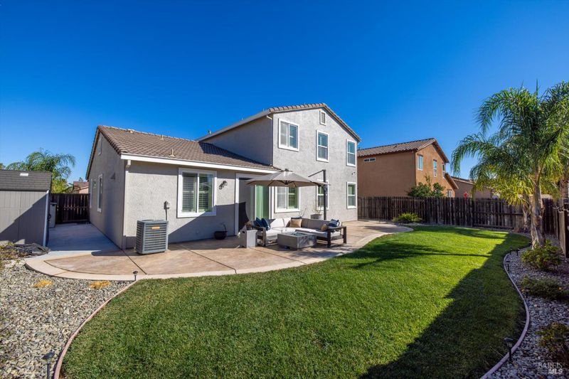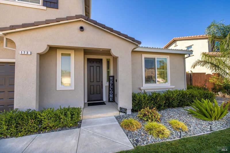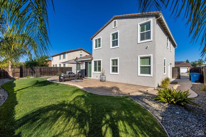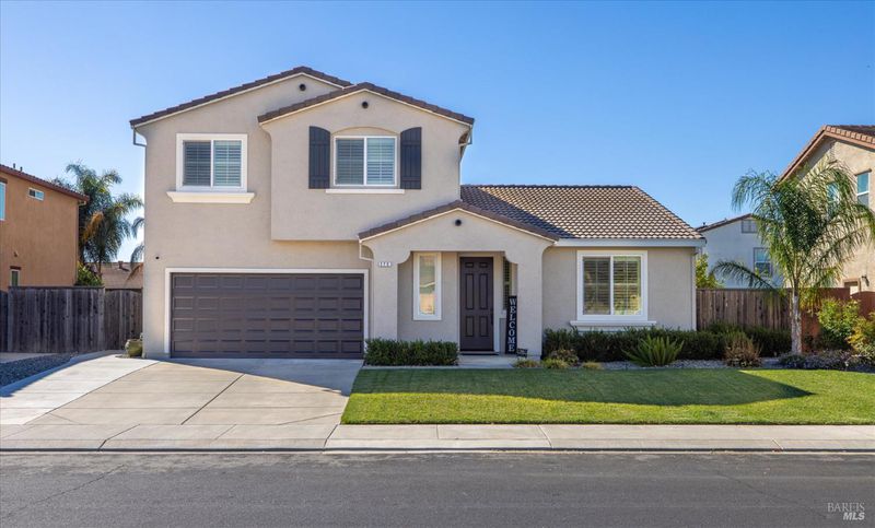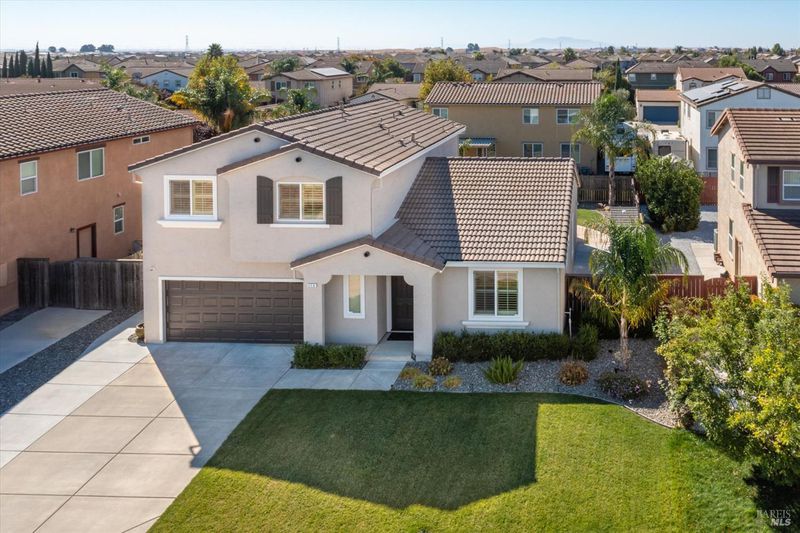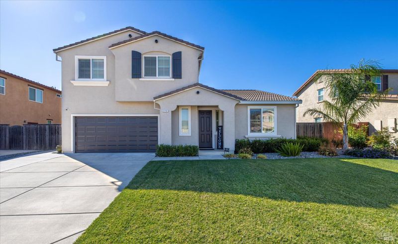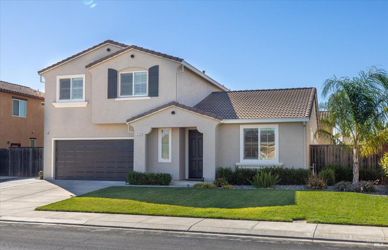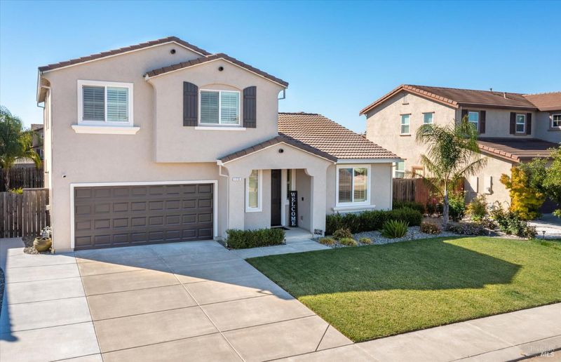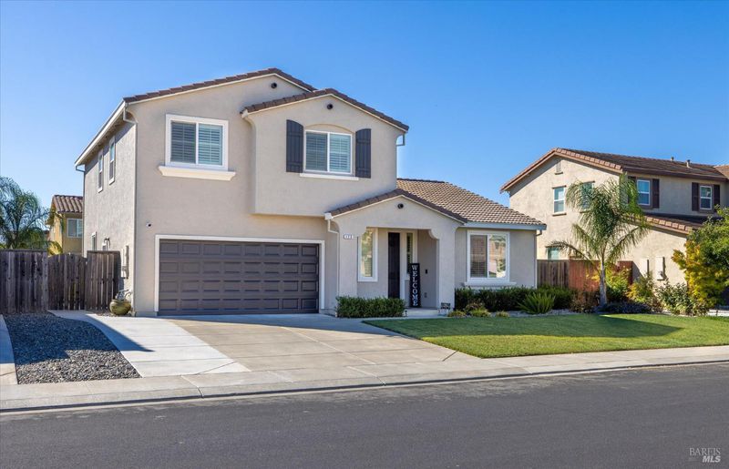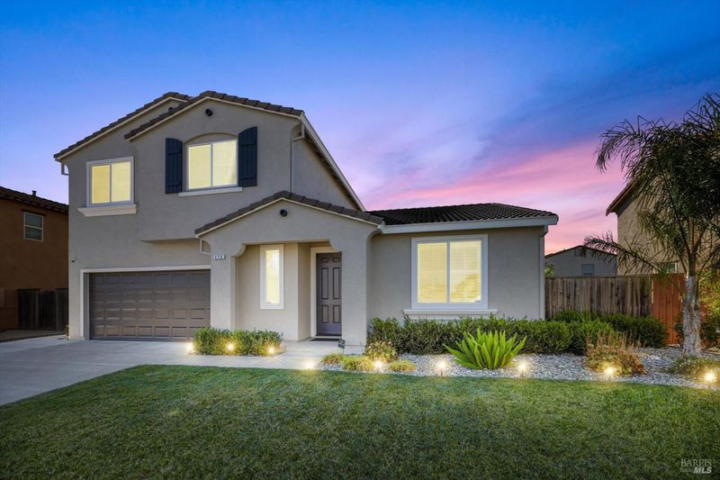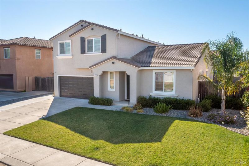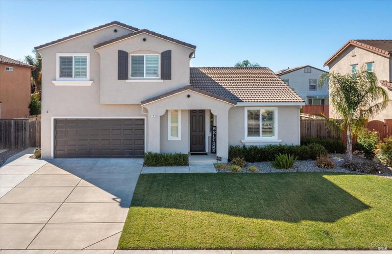 Immaculate,contemporary home minutes from Travis AFB, 4/5 Bed, 3 Bath. Ideally located near beautiful local parks, top-rated schools and shopping, this stunning two-story home offers modern living with unmatched convenience. Updated and impeccably maintained, this spacious home boasts a bright open floor plan designed for both comfort and style. Step into the heart of the home, a chef-inspired kitchen featuring a generous center island, abundant cabinetry, SS appliances, pantry, granite counters and open sight lines into the expansive living room. Whether you're hosting friends or enjoying a quiet evening in, the seamless layout makes everyday living and entertaining effortless. A versatile downstairs bedroom and full bath offer the perfect setup for guests, or extended family. There's even an add'l separate office too! Upstairs, you'll find three more well-appointed bedrooms, including a luxurious primary suite, along with two additional full bathrooms. Throughout the home, enjoy custom plantation shutter window coverings, upgraded LVT flooring, immaculate interior finishes and custom paint that enhances the warm, modern ambiance & a fully finished garage. Outside, unwind in your low-maintenance backyard retreat. The manicured backyard completes the picture. Welcome Home