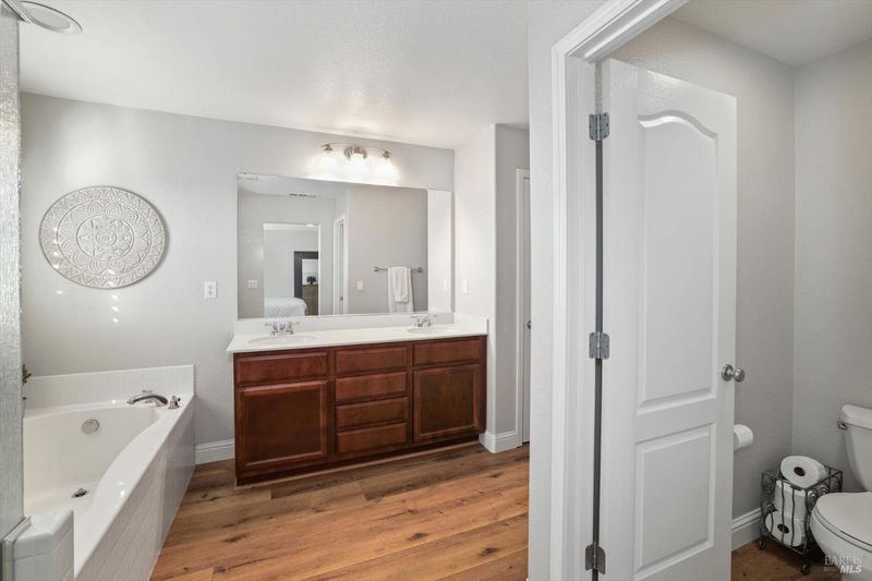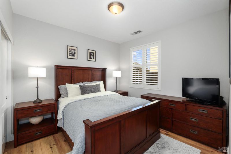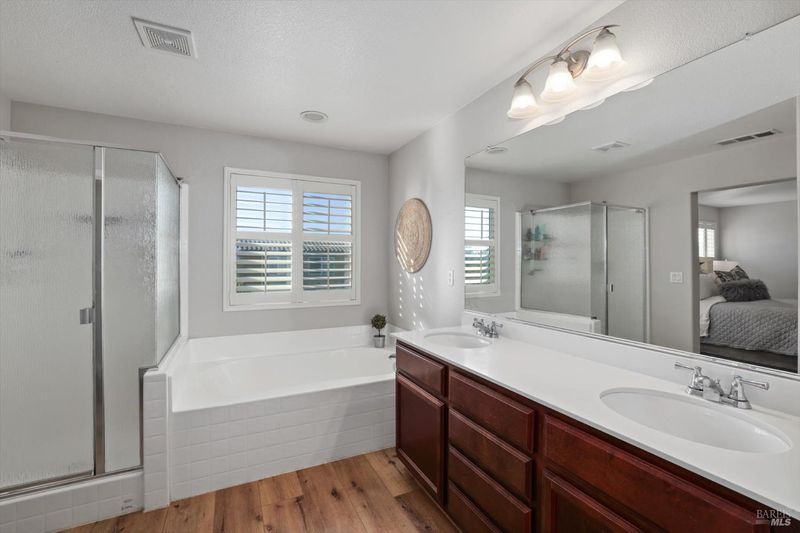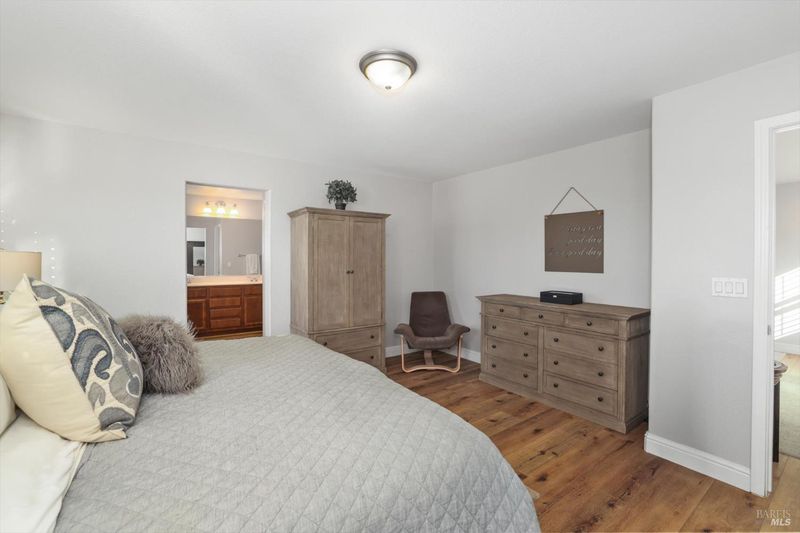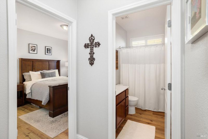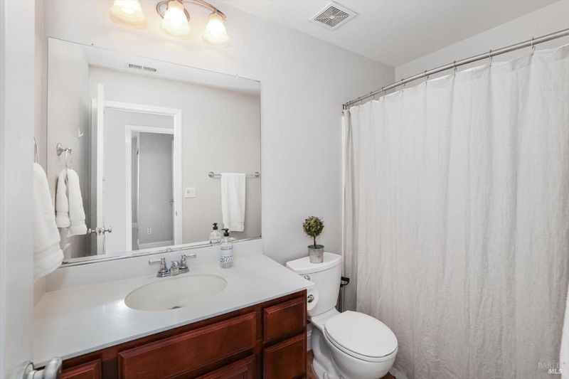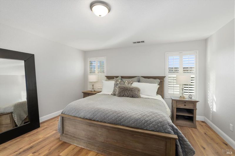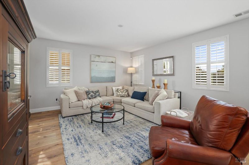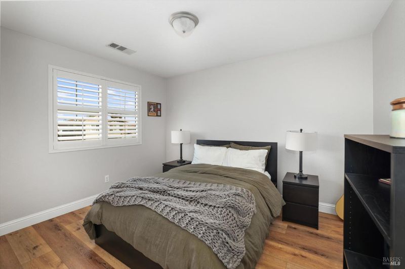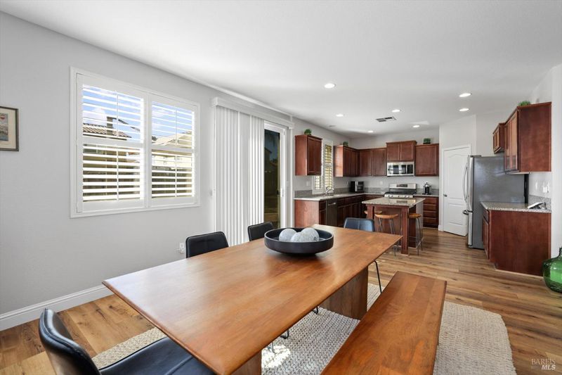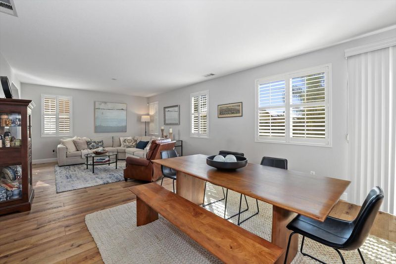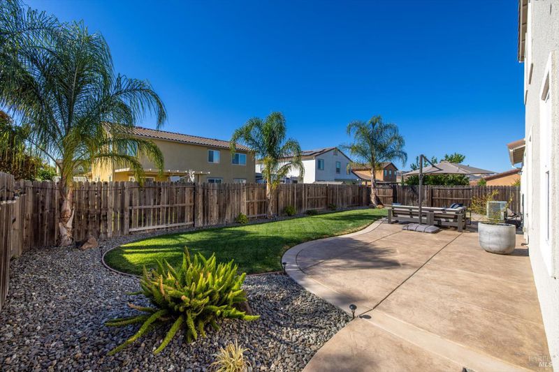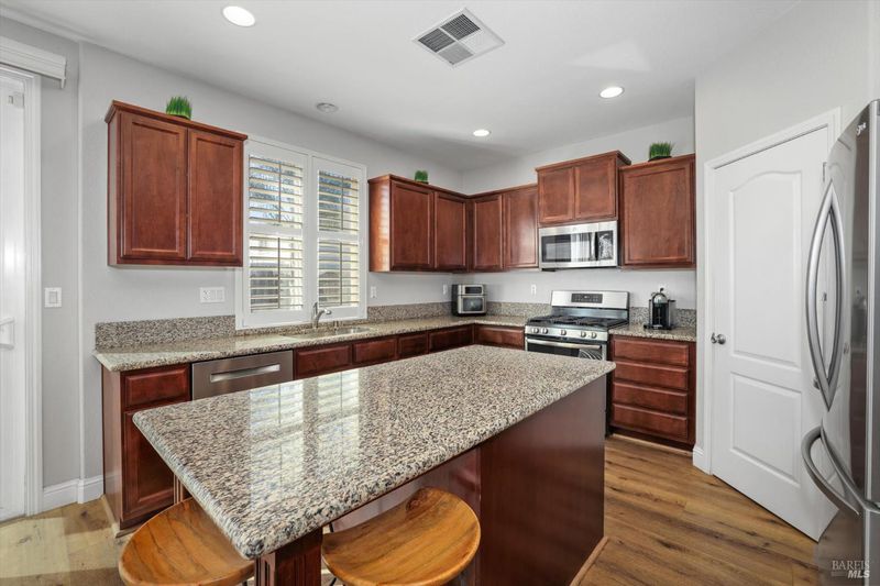 Immaculate,contemporary home minutes from Travis AFB, 4/5 Bed, 3 Bath. Ideally located near beautiful local parks, top-rated schools and shopping, this stunning two-story home offers modern living with unmatched convenience. Updated and impeccably maintained, this spacious home boasts a bright open floor plan designed for both comfort and style. Step into the heart of the home, a chef-inspired kitchen featuring a generous center island, abundant cabinetry, SS appliances, pantry, granite counters and open sight lines into the expansive living room. Whether you're hosting friends or enjoying a quiet evening in, the seamless layout makes everyday living and entertaining effortless. A versatile downstairs bedroom and full bath offer the perfect setup for guests, or extended family. There's even an add'l separate office too! Upstairs, you'll find three more well-appointed bedrooms, including a luxurious primary suite, along with two additional full bathrooms. Throughout the home, enjoy custom plantation shutter window coverings, upgraded LVT flooring, immaculate interior finishes and custom paint that enhances the warm, modern ambiance & a fully finished garage. Outside, unwind in your low-maintenance backyard retreat. The manicured backyard completes the picture. Welcome Home