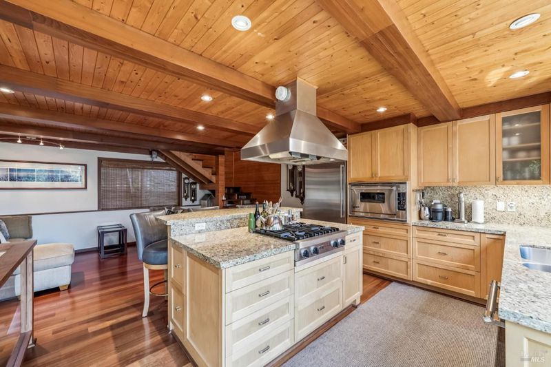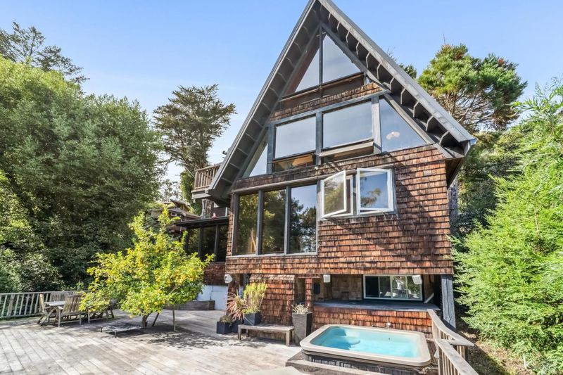 Welcome to 40 Mountain Lane a handcrafted sanctuary nestled on the slopes of Mt. Tamalpais. This magical Mill Valley oasis blends custom artistry with nature, featuring redwood ceilings, rich woodwork, and architectural staircases that flow through the home. The living and dining areas are framed by floor-to-ceiling windows overlooking a lush, park-like setting with multiple Ipe decks and a mature lemon tree. The chef's kitchen showcases custom cabinetry, granite counters, and Viking Professional appliances, while cozy gathering spaces with a gas fireplace and Brazilian cherry floors invite warmth and connection. The primary suite offers tranquil views of the forest canopy, the San Francisco skyline, and the East Bay hills, while an expansive lower deck with a hot tub, sauna, and outdoor shower creates a true state-park-like retreat. Thoughtful upgrades include solar power with large capacity battery backup, a high-efficiency heat pump with AC, a new metal roof, and an oversized garage with EV charging. Just minutes to downtown Mill Valley and the Golden Gate Bridge, 40 Mountain Lane captures the perfect balance of craftsmanship, comfort, and natural beauty.