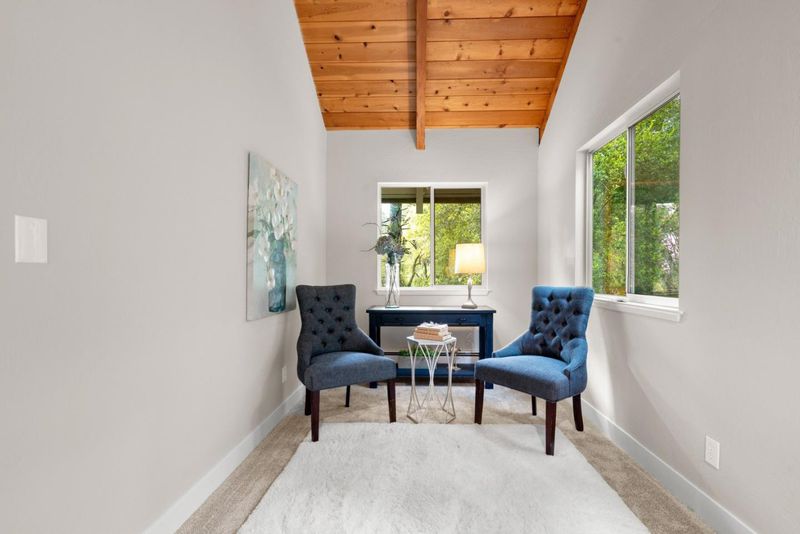 Custom built, beautifully reimagined and brought back to life. Set on over 2 acres in the Santa Cruz Mountains, this updated 2,700+ sq ft property blends its original mid-century character with modern comfort and style. A "treehouse on a hill", this home features open-beamed ceilings, knotty pine accents, kiln-dried redwood railings, and a cozy loft library with built-in seating and serene treetop views. Expansive windows fill the home with natural light and showcase the surrounding redwoods. The flexible floor plan offers four bedrooms and two baths, with two bedrooms on each level, plus a dedicated office area and generous food and wine storage. Outdoor living is enhanced by the private, tree-lined setting with deck space for days to relax or explore. The property includes an attached two-car garage, plus a detached two-car garage with workshop space for all your toys and tinkering. Peaceful and private, yet ideally located just minutes from Highway 17 for easy access to Santa Cruz, Scotts Valley, and beaches. Welcome Home!
