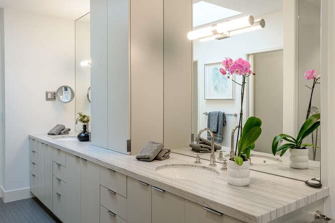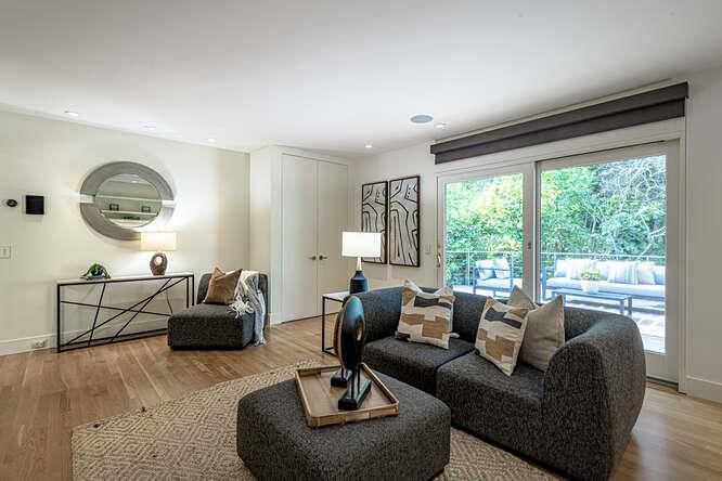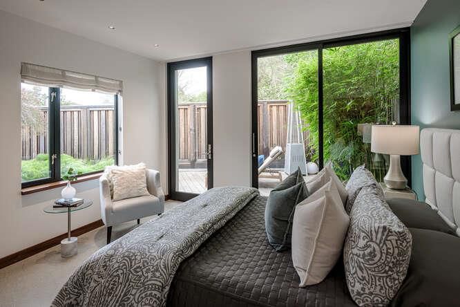 Lower Hillsborough Mid-Century Modern Masterpiece. Walls of glass, soaring ceilings, and resort-caliber grounds define this iconic single-level estate set on a mostly level .716-acre (31,192± sf) lot along one of Hillsboroughs most coveted streets. The 4,670± sf residence showcases a gallery-style entry leading to dramatic living and dining rooms with limestone and granite fireplaces, expansive scale, and seamless indoor-outdoor flow through tall framed glass doors. A perfectly positioned powder room off the main entry offers convenient outdoor access. The stylish chefs kitchen features sleek cabinetry, Wolf 6-burner range with double ovens and grill, 48 Sub-Zero refrigerator, Miele wall oven and microwave, two Bosch dishwashers, and an oversized island with prep sink. An adjacent family room with built-in desks opens to an Ipe deck. The luxurious primary suite opens to the pool, with a spa-inspired bath and heated floors. Three additional ensuite bedrooms provide privacy and comfort. A newly constructed 1,095± sf ADU (2022) with separate address includes full kitchen, living areas, AC, and heated floors. Lush grounds offer pool, spa, pool house with Nano doors, fire pit with built in seating, outdoor kitchen with Lynx appliances, lawn area, solar, EV- outlet, mud/laundry room.
