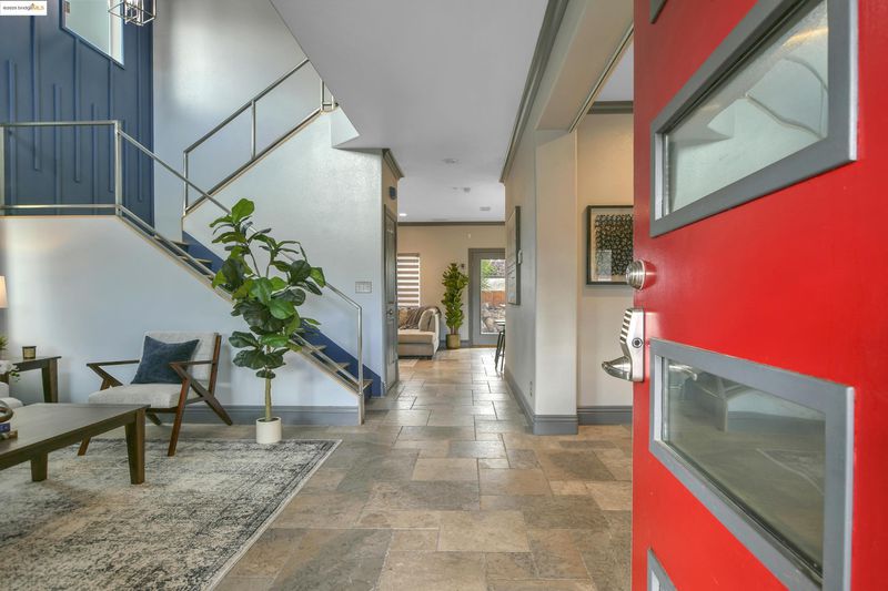 Located in a quiet cul-de-sac in the desirable Rosegate neighborhood, this contemporary 4-bedroom, 2.5-bath home blends modern design with wellness-focused living. With 2,200 sq ft on a 9,100 sq ft lot, it features natural wood and stone flooring, abundant natural light, and a striking custom stairwell with steel railings and tempered glass. The main level includes a welcoming living room with a bold accent wall and a formal dining area with French doors and integrated blinds for effortless indoor-outdoor dining. The open-concept living room and highly upgraded kitchen offer extra storage and a chopping-block counter that doubles as a breakfast bar. Wellness upgrades include a hospital-grade HEPA filter, solar, a tankless water heater, and a water softener. The spacious backyard features a saltwater pool, multiple entertaining areas, fruit trees, side-yard RV access, and a roll-up door to the tandem garage. A perfect blend of comfort and contemporary style.