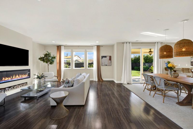 Spacious modern home located in the beautiful Sterling Chateau neighborhood of Vacaville. Open concept layout: entry area with a coat closet, living room with a statement fireplace, light filled dining room space, and kitchen with numerous cabinets. This is the perfect place for large gatherings and holiday celebrations. Four bedrooms upstairs: an expansive primary bedroom and bathroom with a double sink, shower, bathtub, and a walk-in closet; the fourth bedroom has its own private feel, located at the end of the hallway with a full bathroom next to it. Large backyard with rose, lemon and palm trees, and a covered patio. You are midway between San Francisco and Sacramento, with proximity to Napa Valley, and minutes away from Travis AFB. Enjoy Vacaville Premium Outlets and Nut Tree Plaza. Magnolia and Play4All Parks near by.