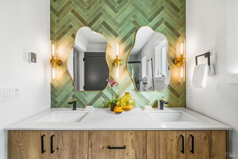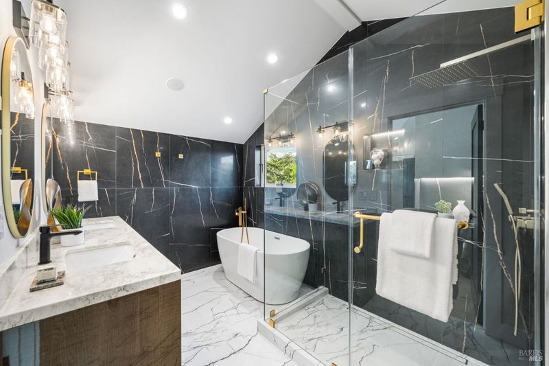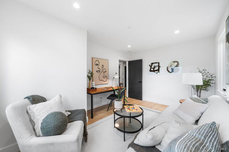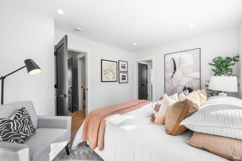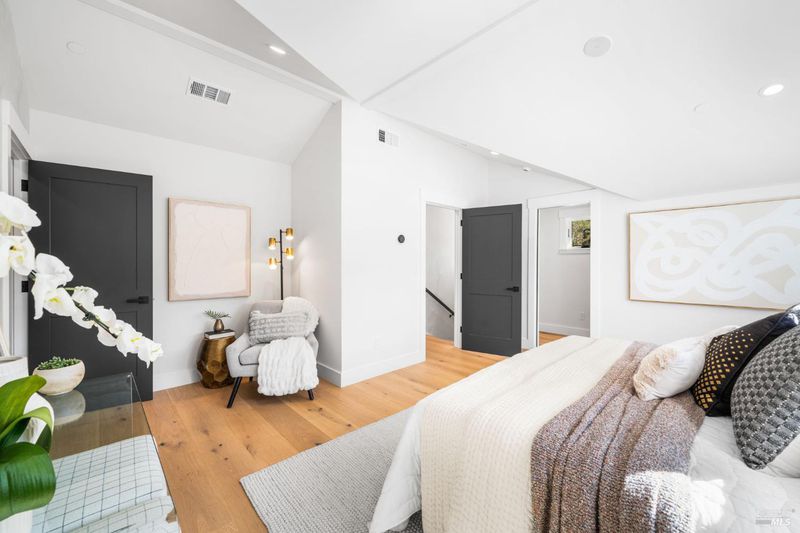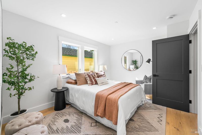 This newly built residence near San Rafael's Civic Center blends refined craftsmanship with modern sophistication. Set on a 6,995 sq. ft. lot, the home spans roughly 1861 sq. ft. across two levels, offering a seamless balance of elegance and comfort. Wide-plank white oak floors, board-and-batten detailing, and a custom front door establish a timeless aesthetic. Inside, two spacious primary suites provide versatility for guests, multi-generational living, or a private office setup. The open-concept living area centers around a designer kitchen with premium finishes and high-end appliances. An indoor/outdoor sound system, Ipe wood deck, and a beautifully landscaped yard with mature Queen Palms create the perfect space for entertaining. The yard is also pre-plumbed for a fire pitideal for relaxing evenings under the stars. Every element of this home has been custom-craftedno builder-grade materials, no shortcuts resulting in a truly one-of-a-kind property that showcases attention to detail and luxury at every turn.