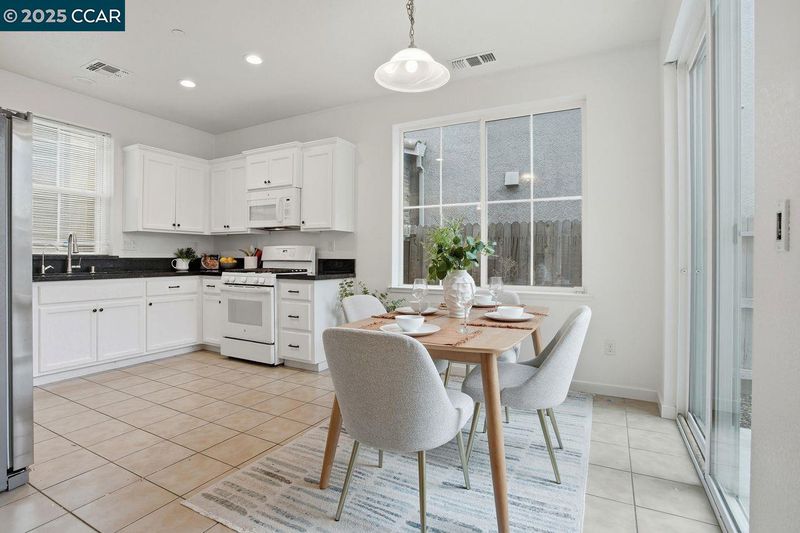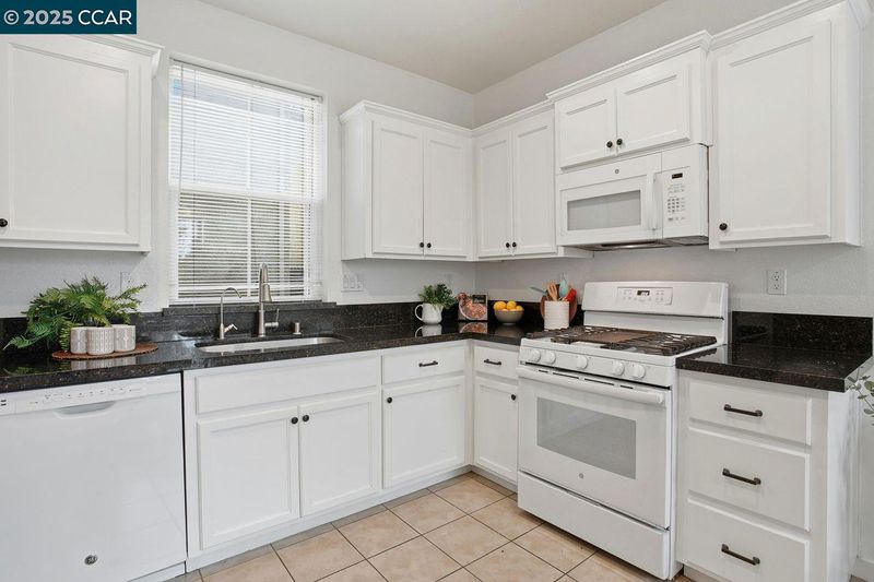 - Gas Range, Plumbed For Ice Maker, Microwave, Free-Standing Range, Refrigerator, Dryer, Washer, Counter - Solid Surface, Eat-in Kitchen, Gas Range/Cooktop, Ice Maker Hookup, Range/Oven Free Standing