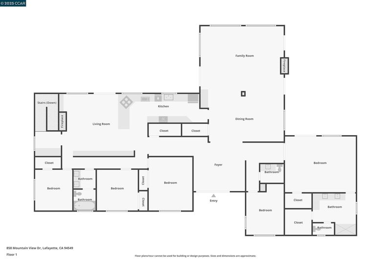 Gorgeous hillside home with flexible floorplan for the whole family! Enjoy sweeping views of downtown Lafayette and the surrounding hills from this private, beautifully appointed home. The flexible layout connects the living, dining, and kitchen areas, creating an easy flow for both entertaining and everyday living. The kitchen offers premium appliances, custom cabinetry, and a casual breakfast bar. The main level features a serene primary suite, an office, three additional bedrooms, and two-and-a-half baths. Downstairs includes a spacious fifth bedroom, full bath, laundry room, and a large bonus room with separate exterior access—ideal for guests, an au pair, or a home office. Two driveways and an oversized three-car garage offer abundant parking. Set on two acres dotted with heritage oaks, the outdoor spaces shine with a generous patio, firepit, and outdoor kitchen. Perfect for quiet evenings or lively gatherings under the stars. All just minutes from BART, Hwy 24, Lafayette Reservoir, downtown shopping and