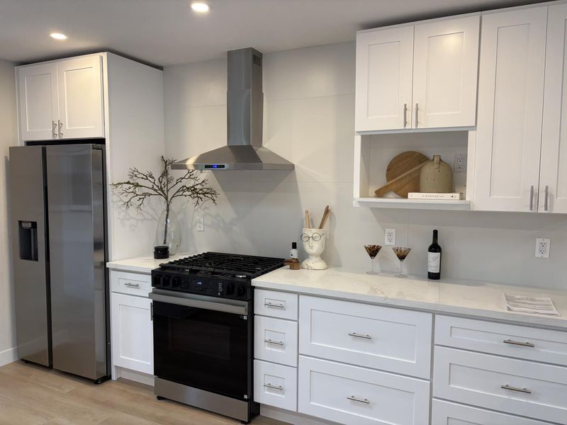 - Cooktop - Gas, Oven - Built-In, Countertop - Quartz, Refrigerator