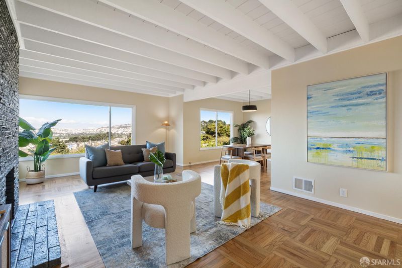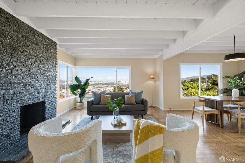Nestled in the desirable Westlake District, this spacious 3-bedroom, 2-bath home offers 1,835 sqft of versatile living with sweeping City views. Step into a bright open-concept living space where the inviting living room features a painted brick fireplace, ceiling beam accents, and refinished parquet floors, while large windows frame serene views and fill the home with natural light. The adjoining dining room flows seamlessly into the kitchen. Down the hall are two generously sized bedrooms, full bath and ample hallway storage. The lower level, added with permits, expands the home's functionality with a family room complete with a wet bar and double French doors that opens directly to the backyard patio and lawn. A third bedroom and a newly added bathroom makes it a perfect space for guests or home office. An additional flex space with built-in cabinetry, a laundry area, and abundant storage provide room to grow and customize. Completing the home is a one-car garage plus driveway parking. Minutes from multiple Shopping Centers, Recreation areas, Golf Courses, and easy access to HWY 35, 280 and Daly City Bart makes this home ideal for those seeking a balance between peaceful suburban living and convenient city access.
